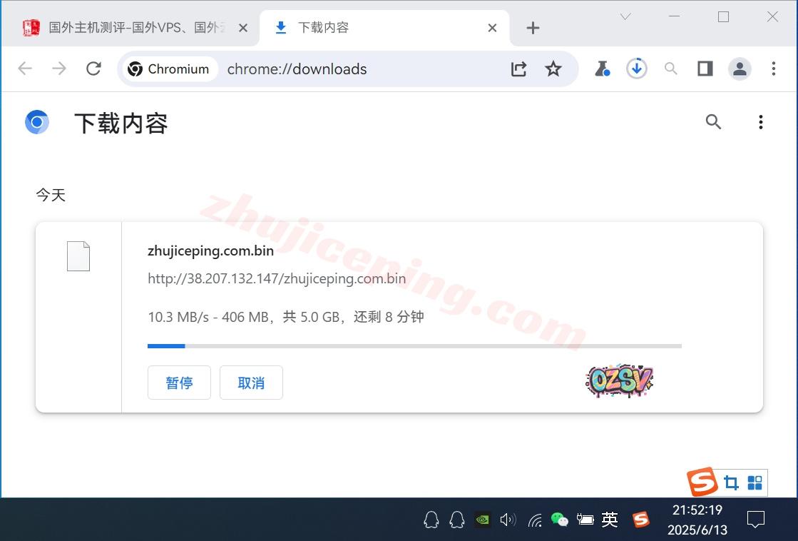 存放在测试VPS上的文件,站长广州联通家宽直接用Chrome来下载该文件,大致的下载速度: