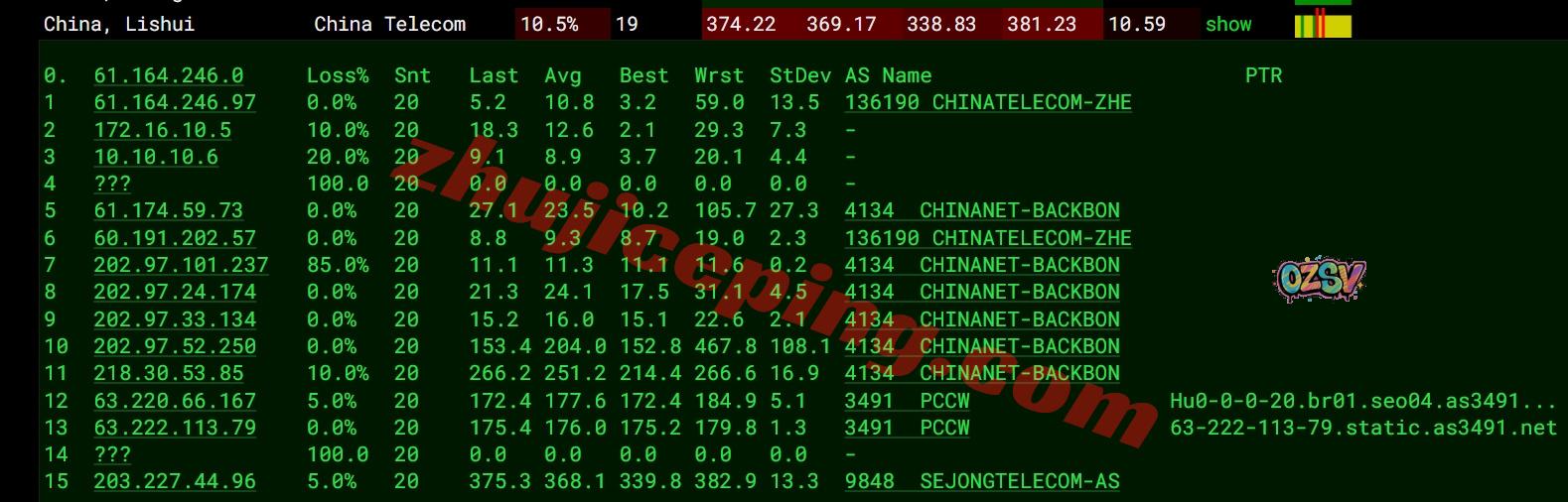 电信去程:直连电信美国圣何塞节点然后接pccw回韩国