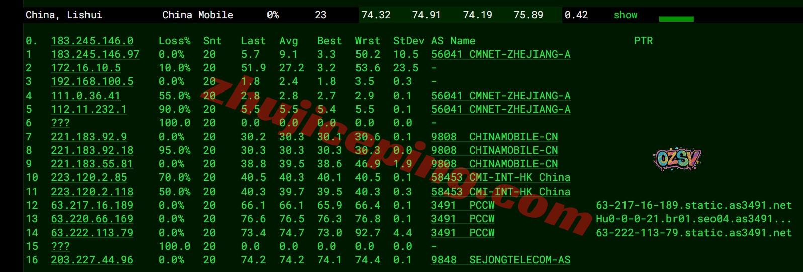 移动去程:移动CMI接PCCW去韩国