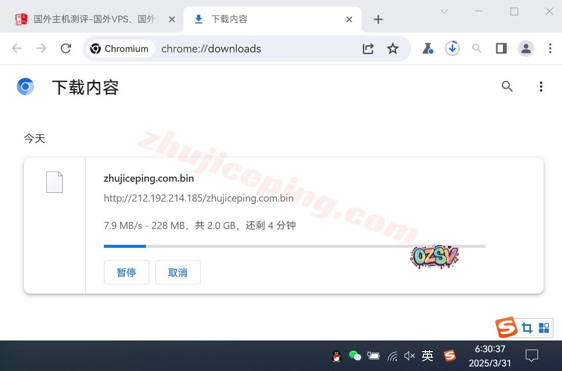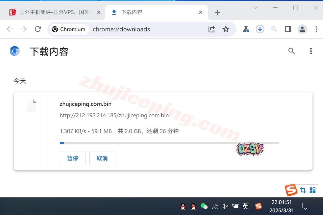 存放在测试VPS上的文件,广州联通家宽直接用Chrome下载该文件,大致的下载速度如下所示: