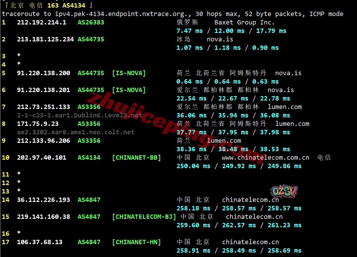 电信去程:直连电信美国圣何塞节点然后接NTT东出经过阿什本去英国再去冰岛