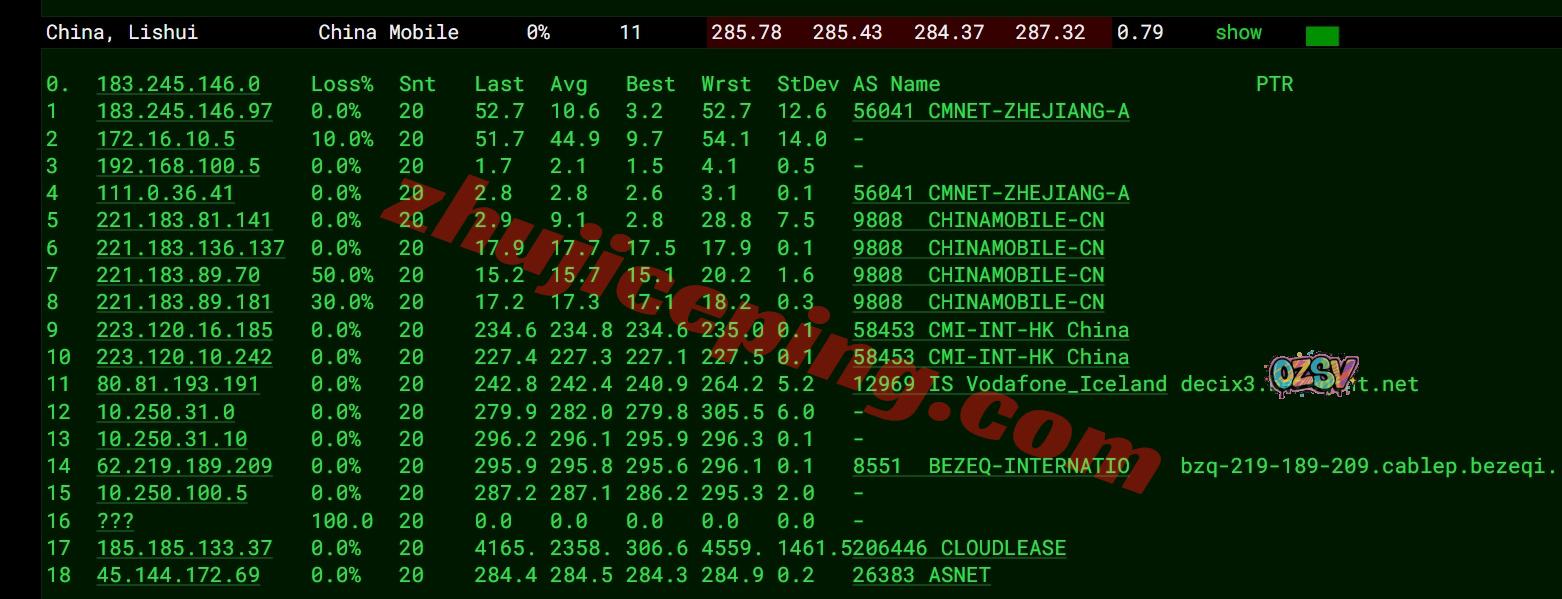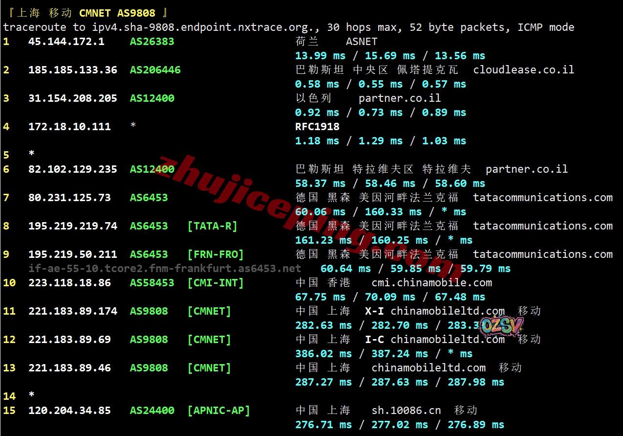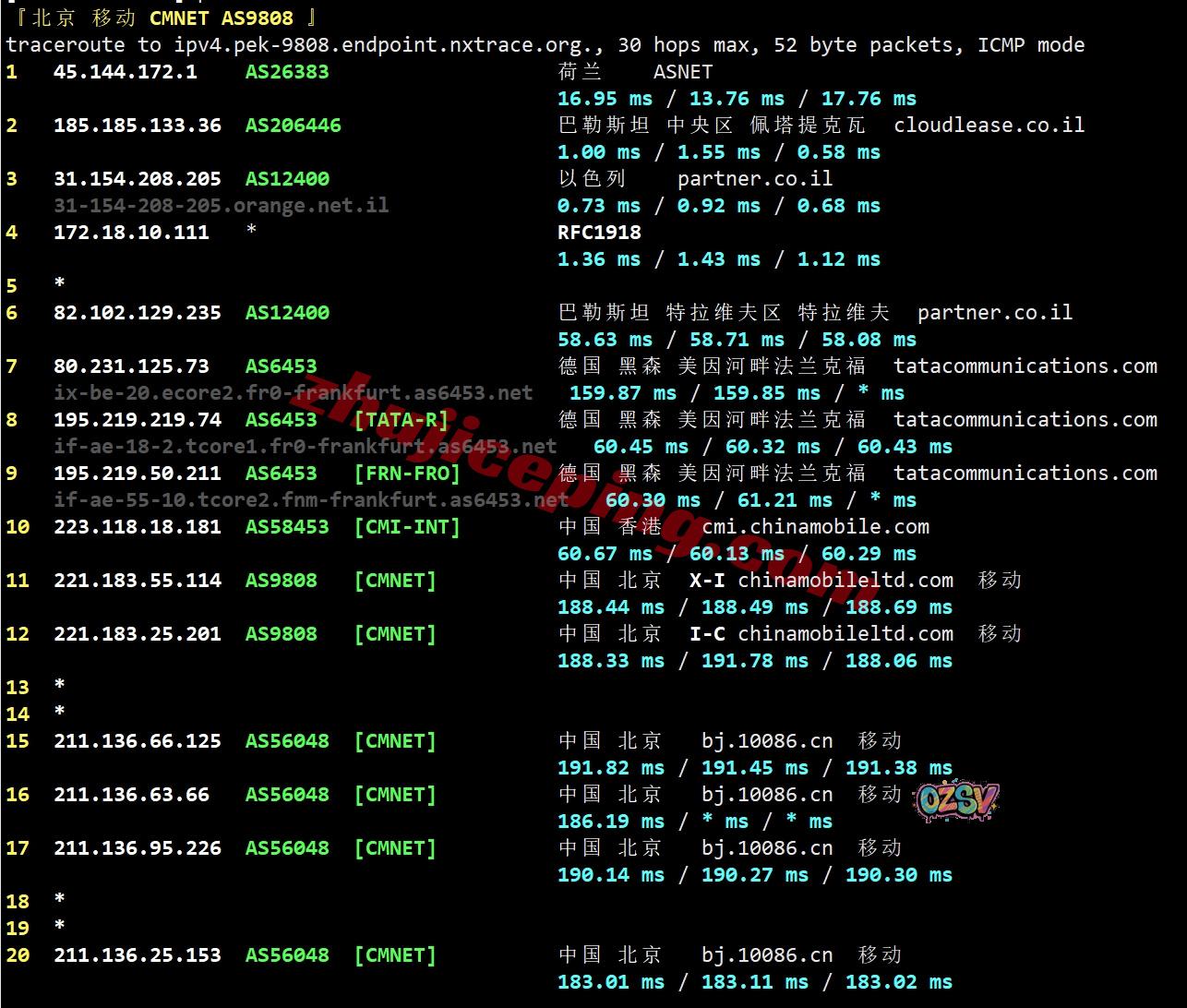 移动去程:直连移动德国法兰克福节点然后接bezeqint去以色列