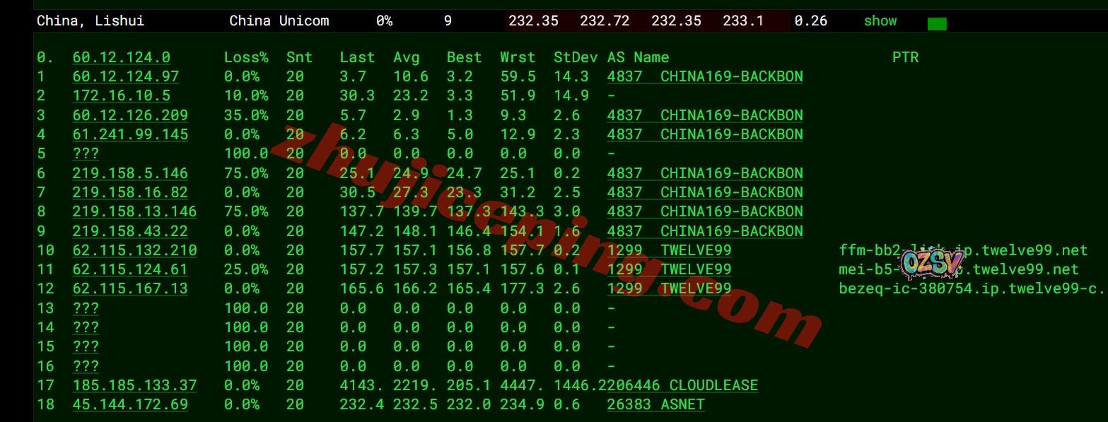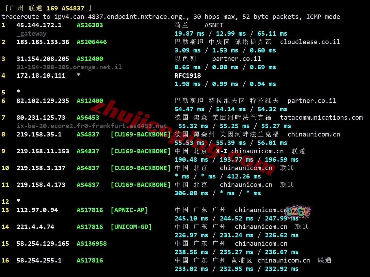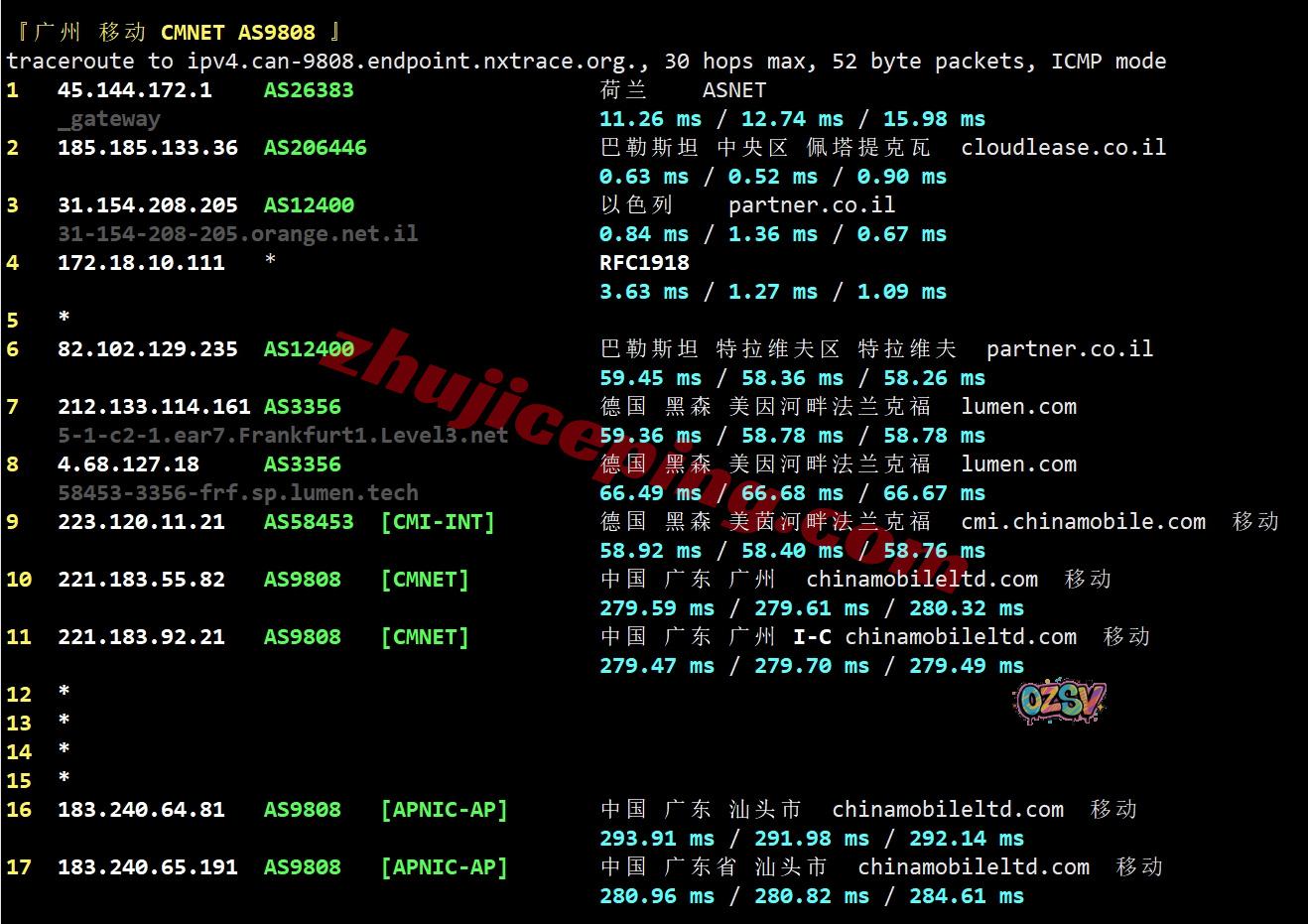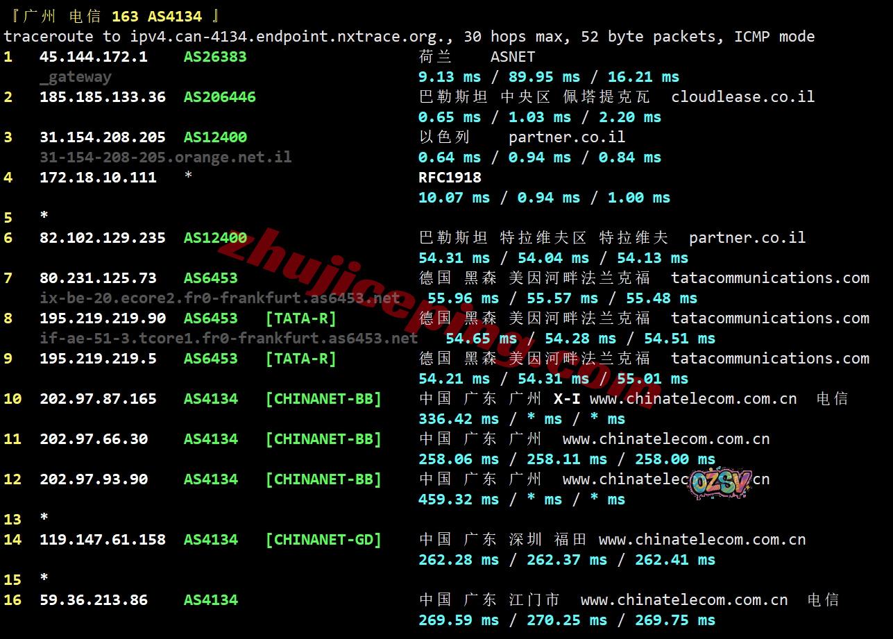 广州方向:走partner.co.il对接lumen去德国法兰克福,然后从移动德国法兰克福节点直连回国