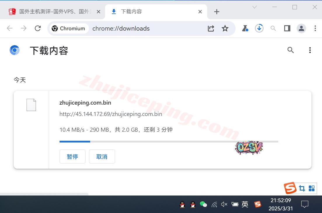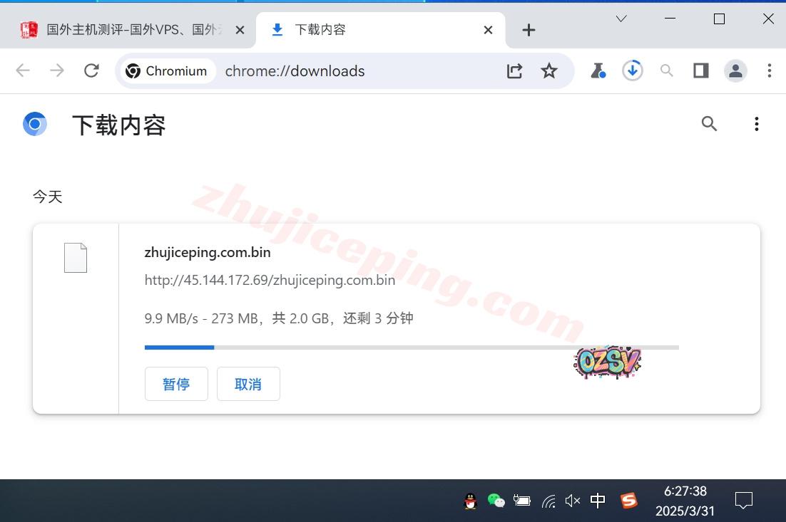 存放在测试VPS上的文件,广州联通家宽直接用Chrome下载该文件,大致的下载速度如下: