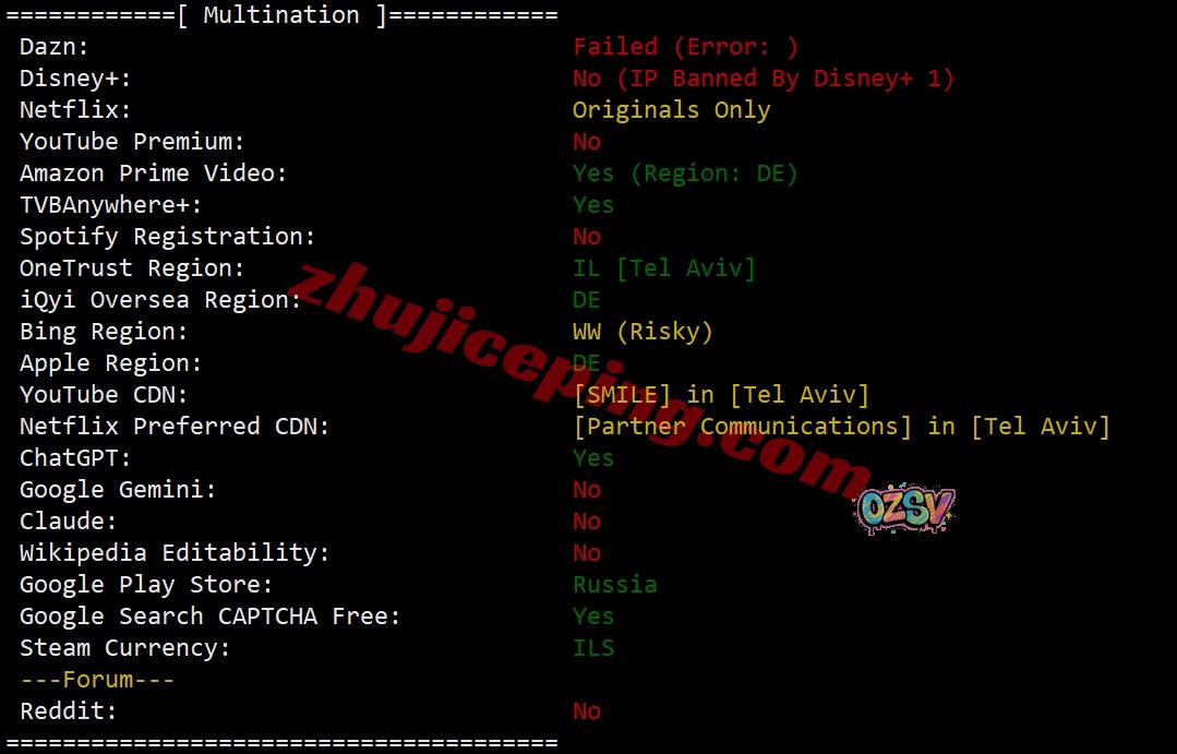 部分流媒体解锁测试: