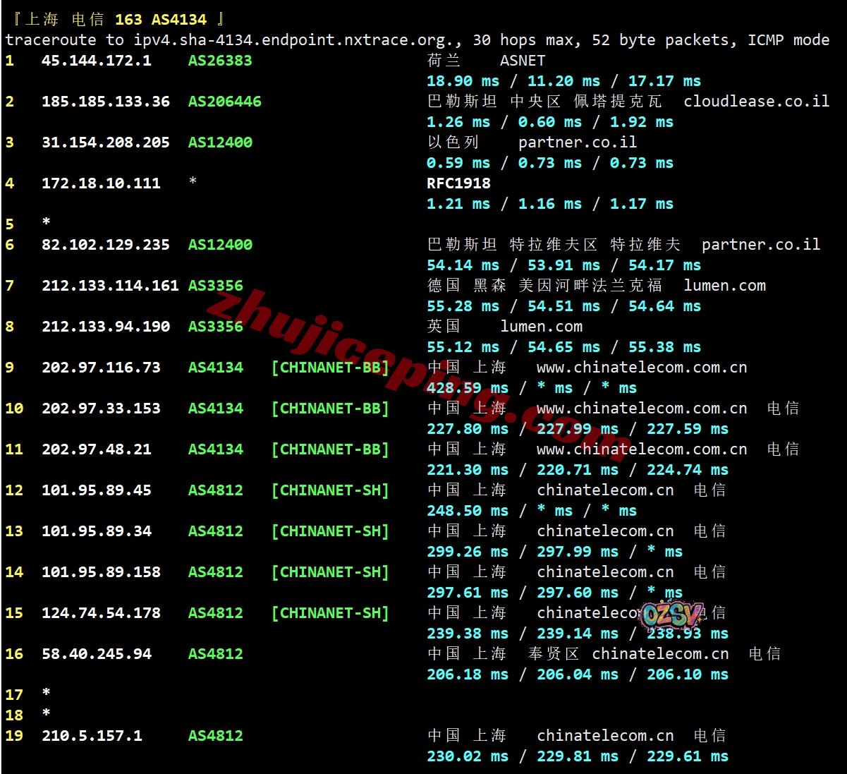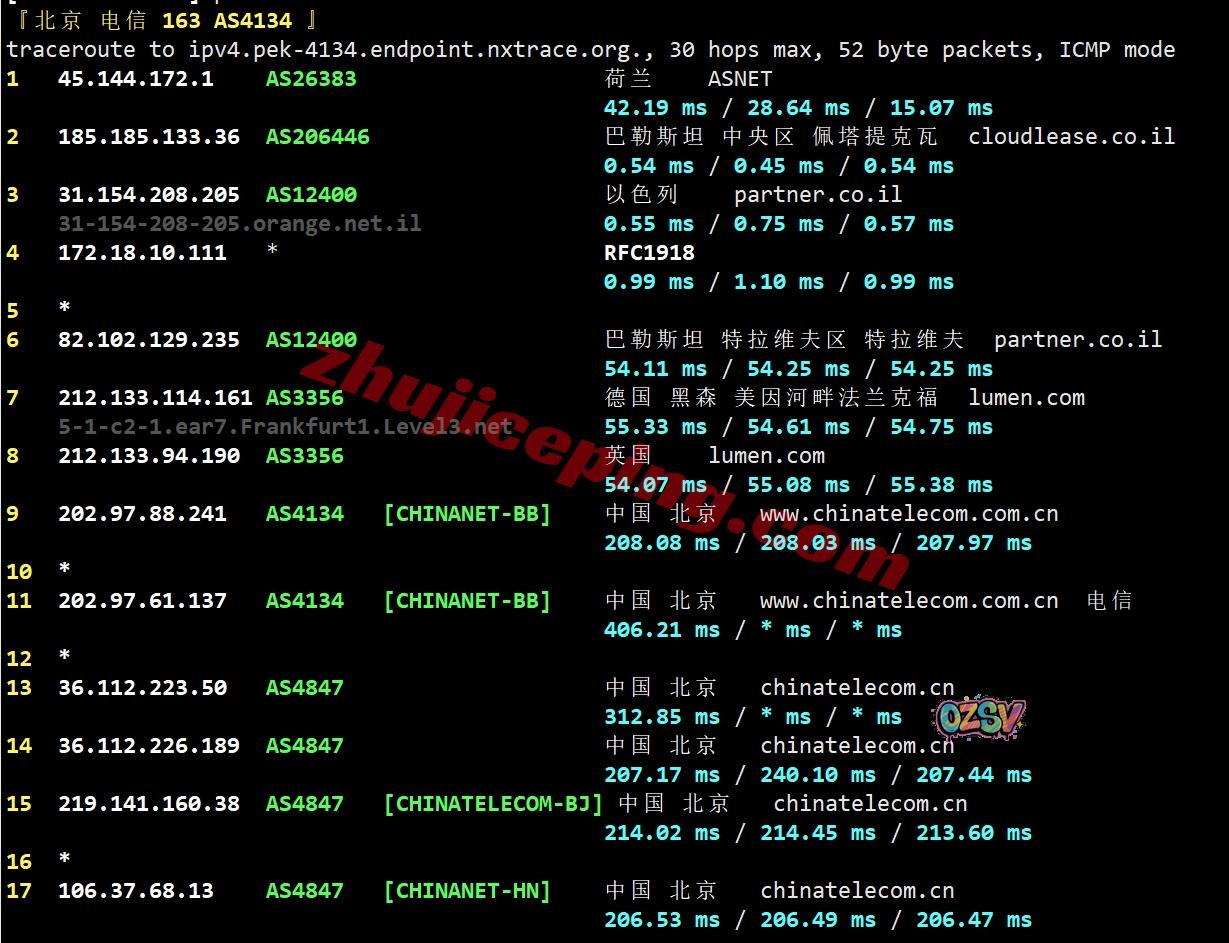 电信去程:直连电信德国法兰克福节点然后接bezeqint去以色列