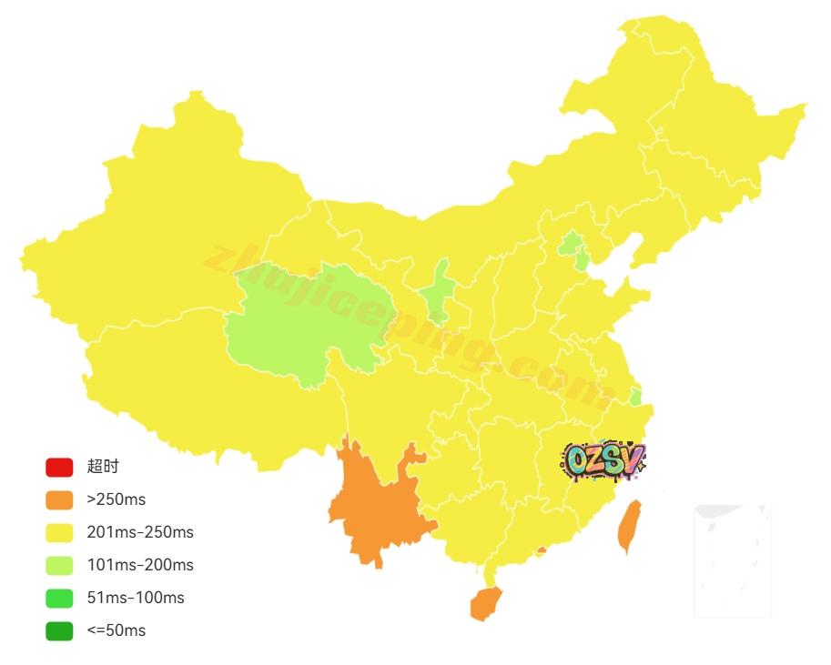 国内三网119个节点的延迟测试数据: