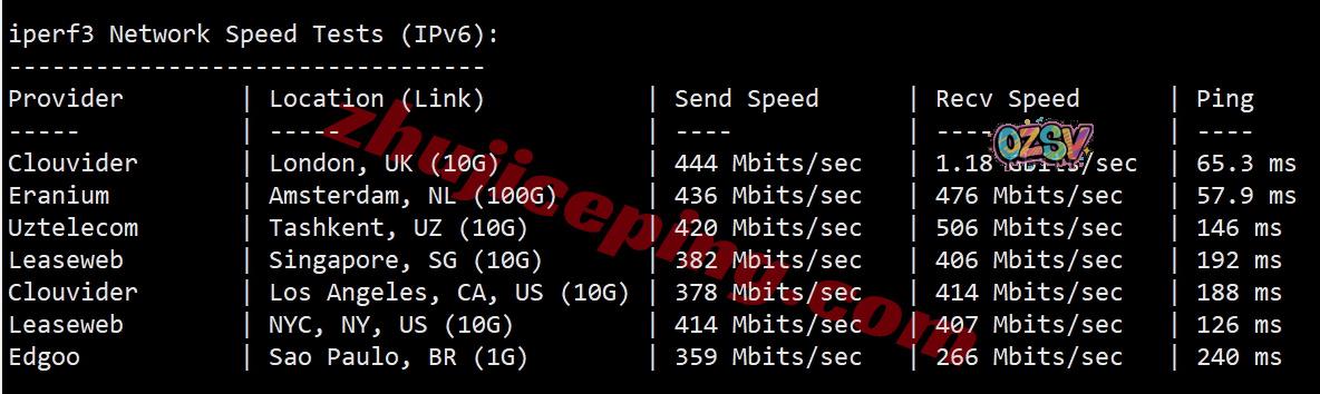 iperf3,在IPv6环境下实测的结果如下所示: