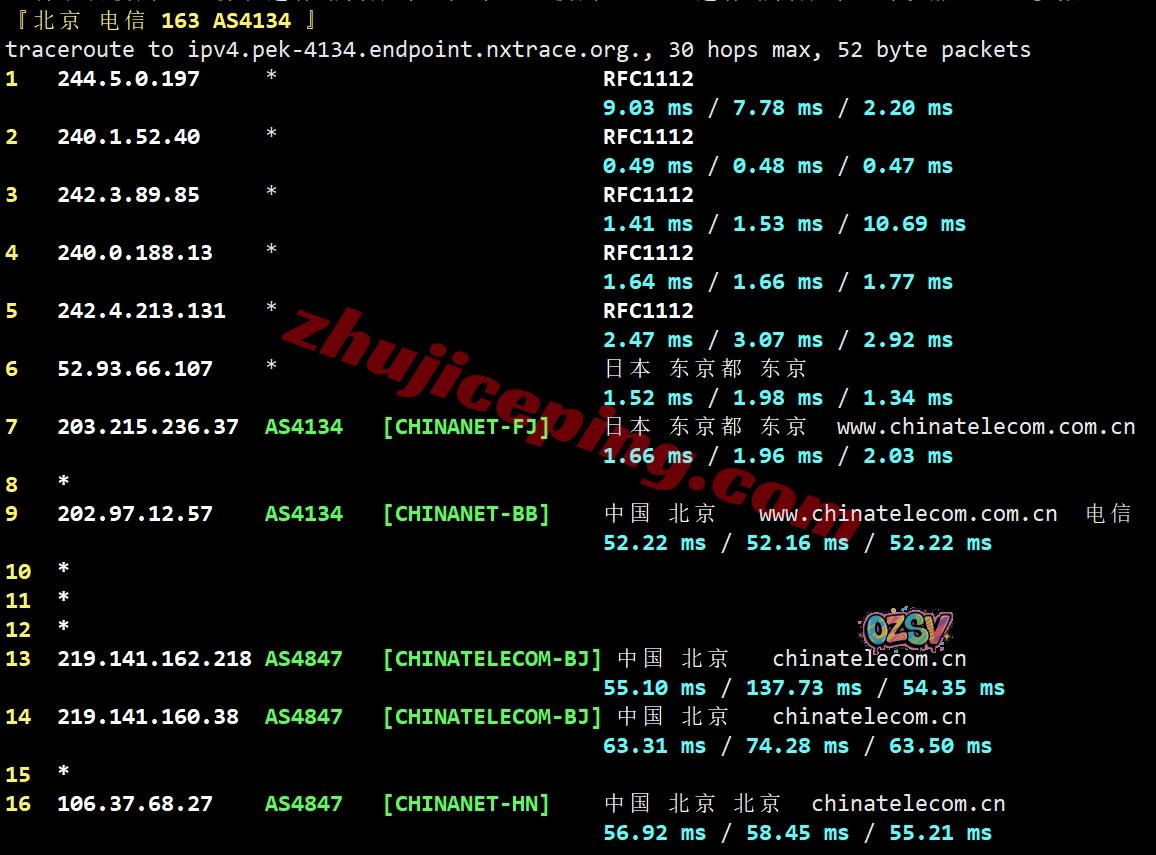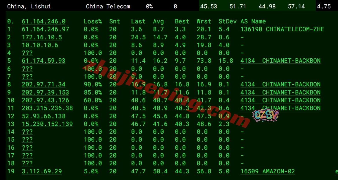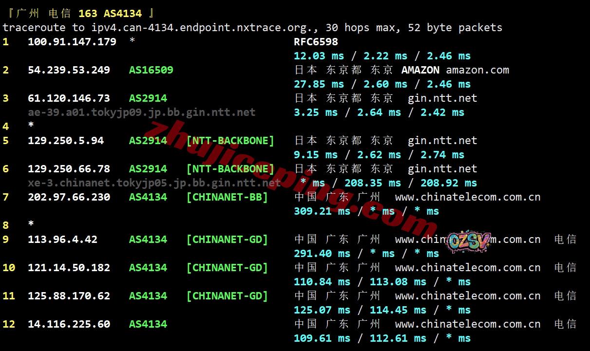 电信去程:直连电信日本东京节点然后对接亚马逊自己的网络