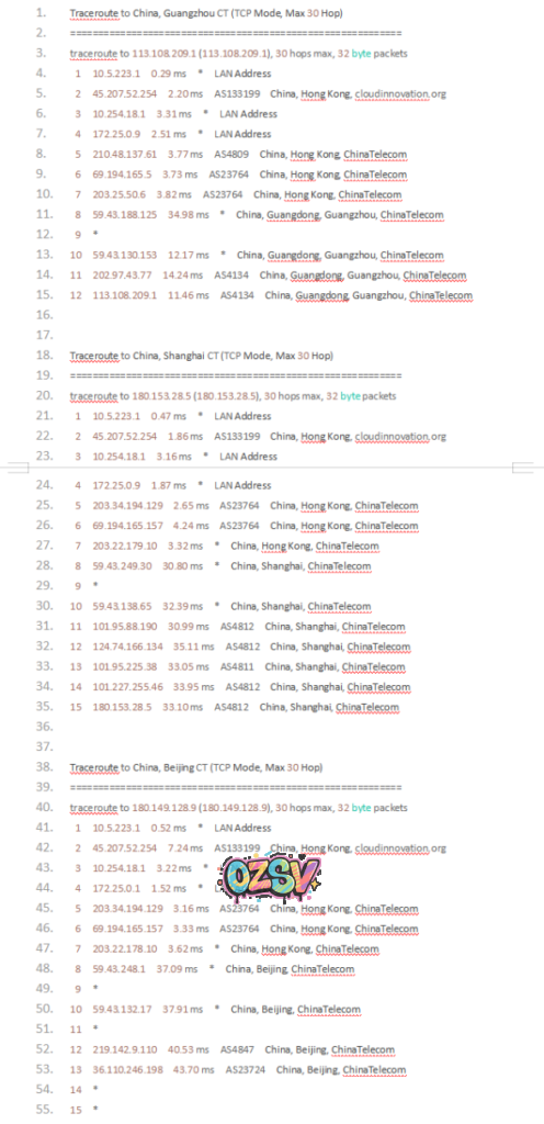 线路总结:电信双程cn2线路;联通双程cuvip也就是AS4837;移动双程直连走的是自家的骨干线路。线路优化的很到位,用来建站还是很不错的。