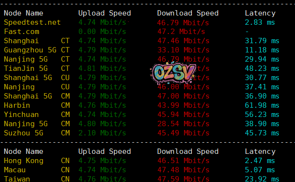 国内测速,晚高峰测试,上行的5M带宽三网跑满。