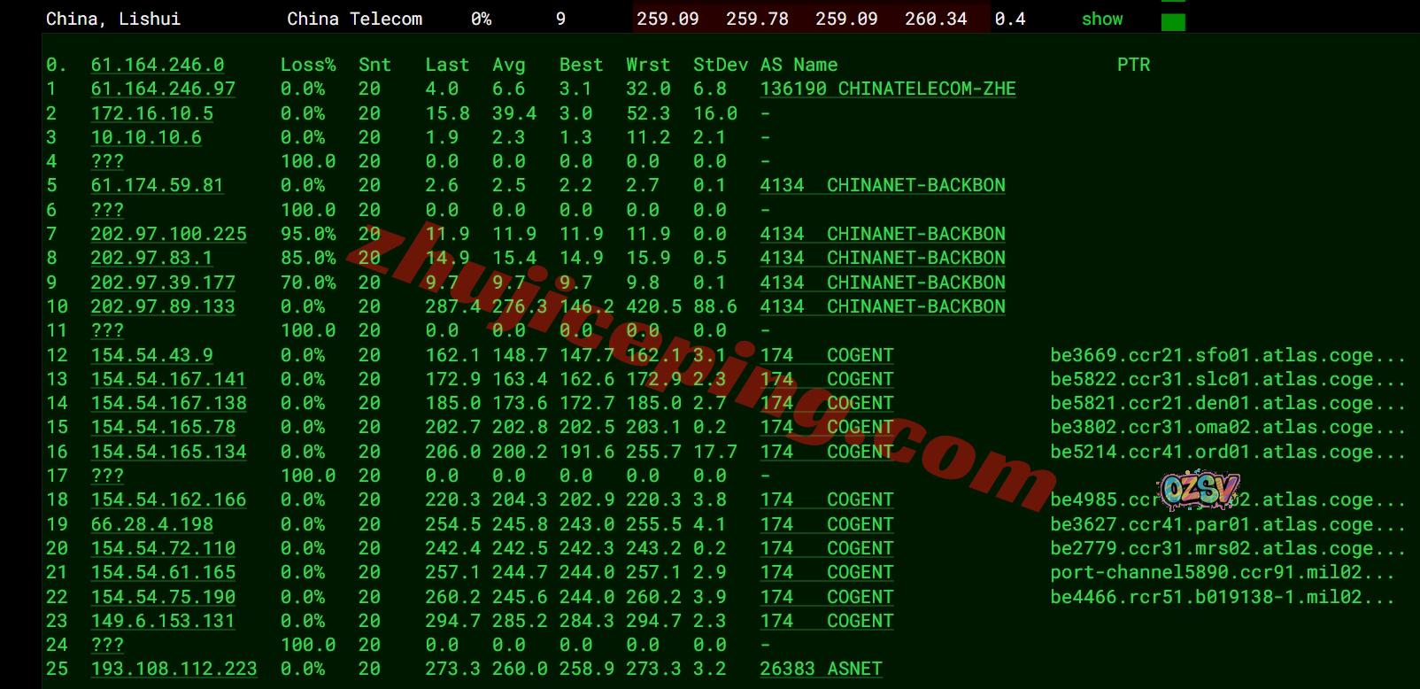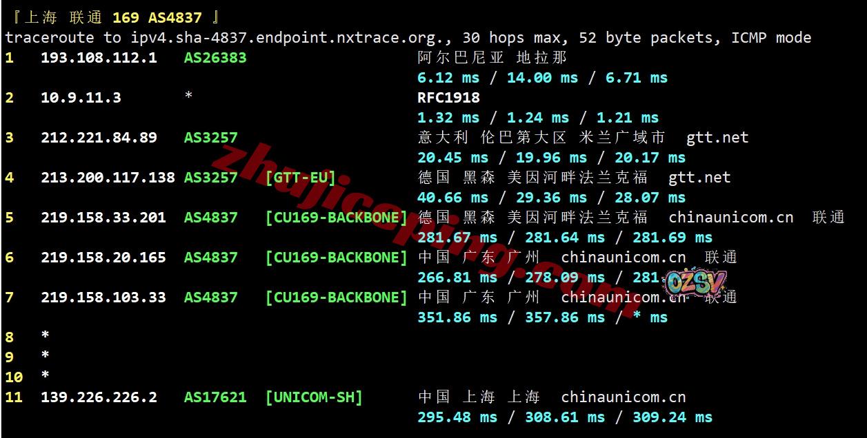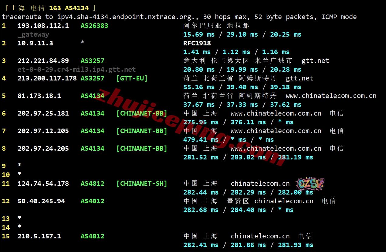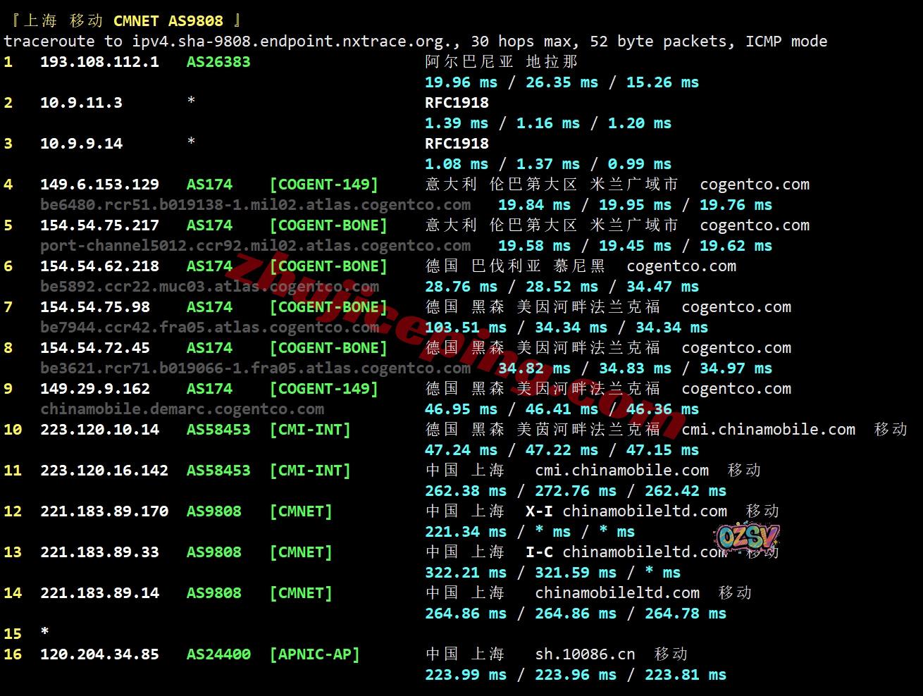 上海方向:走cogent经过意大利、德国,从移动法兰克福节点直连回国