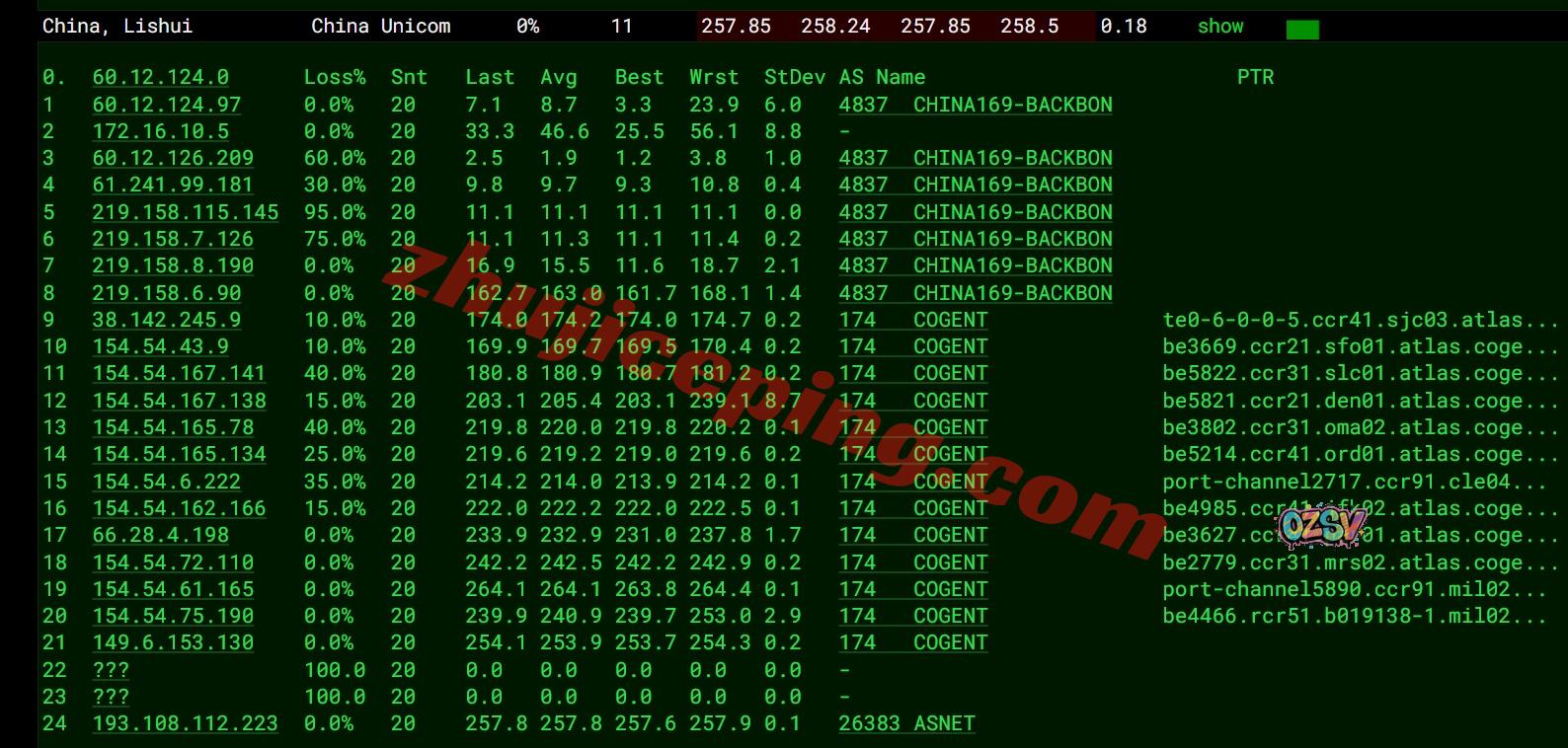 联通去程:直连联通美国圣何塞节点然后接cogent东行从纽约出海去法国、意大利、阿尔巴尼亚
