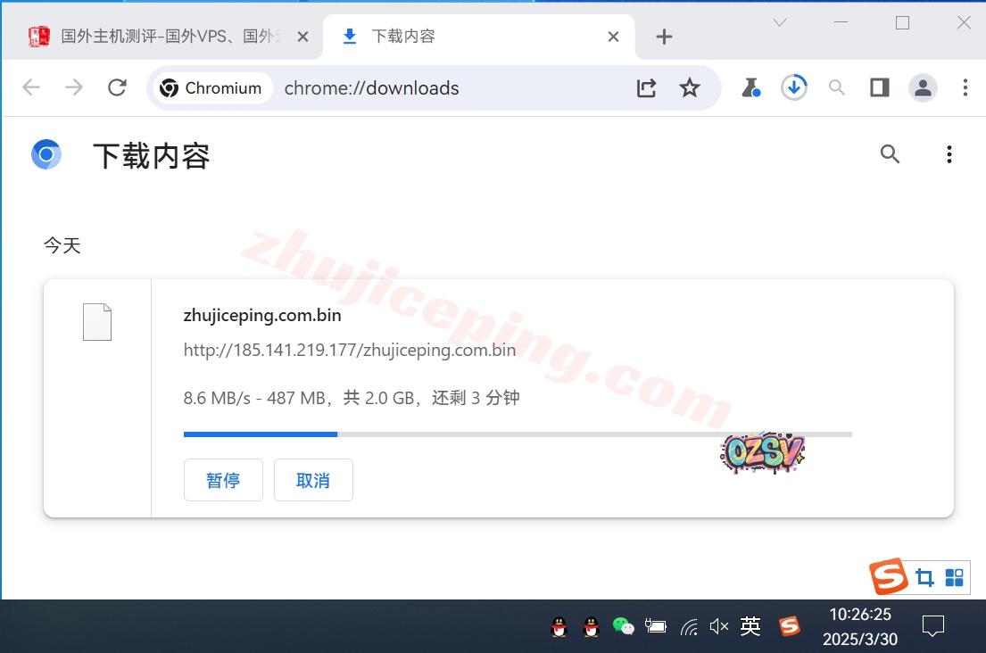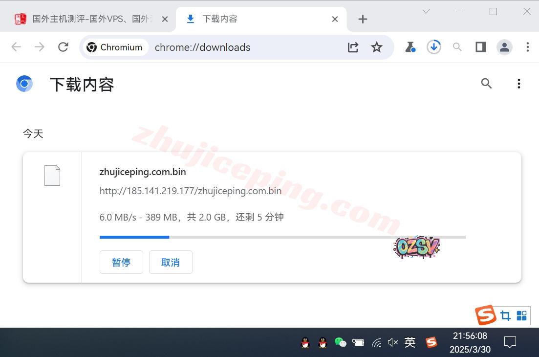 存放在测试VPS上的文件,站长广州联通家宽直接用Chrome下载该文件,大致的下载速度如下: