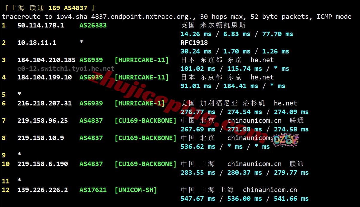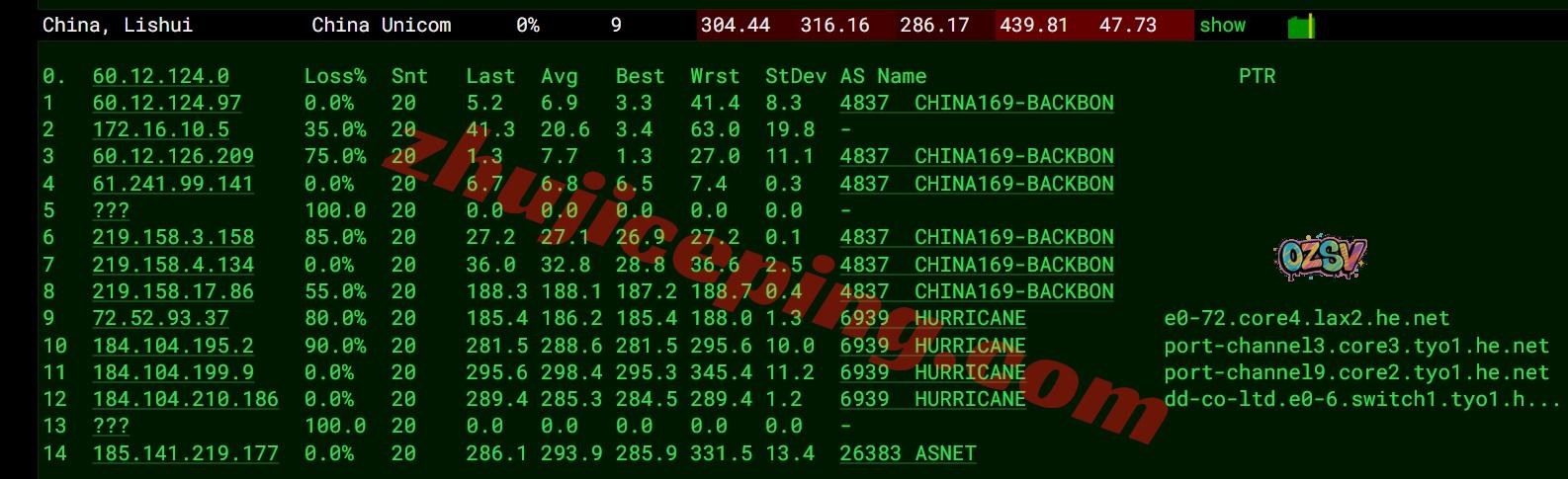 联通去程:直连移动美国洛杉矶节点然后接HE.NET去日本