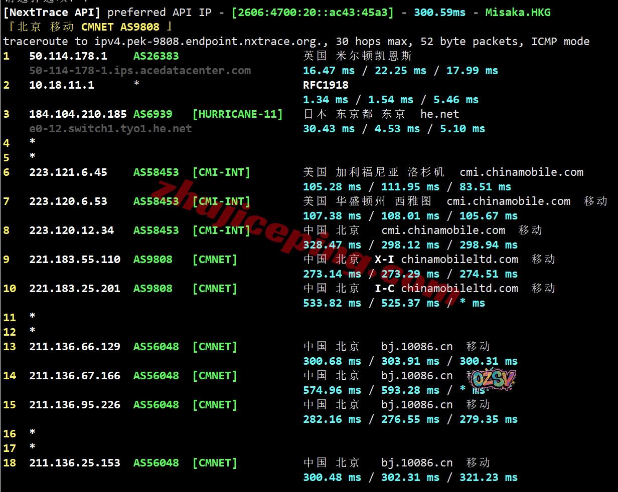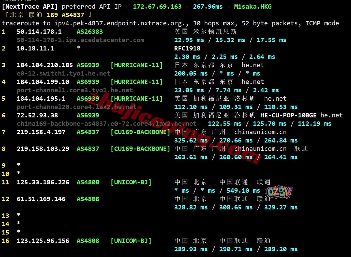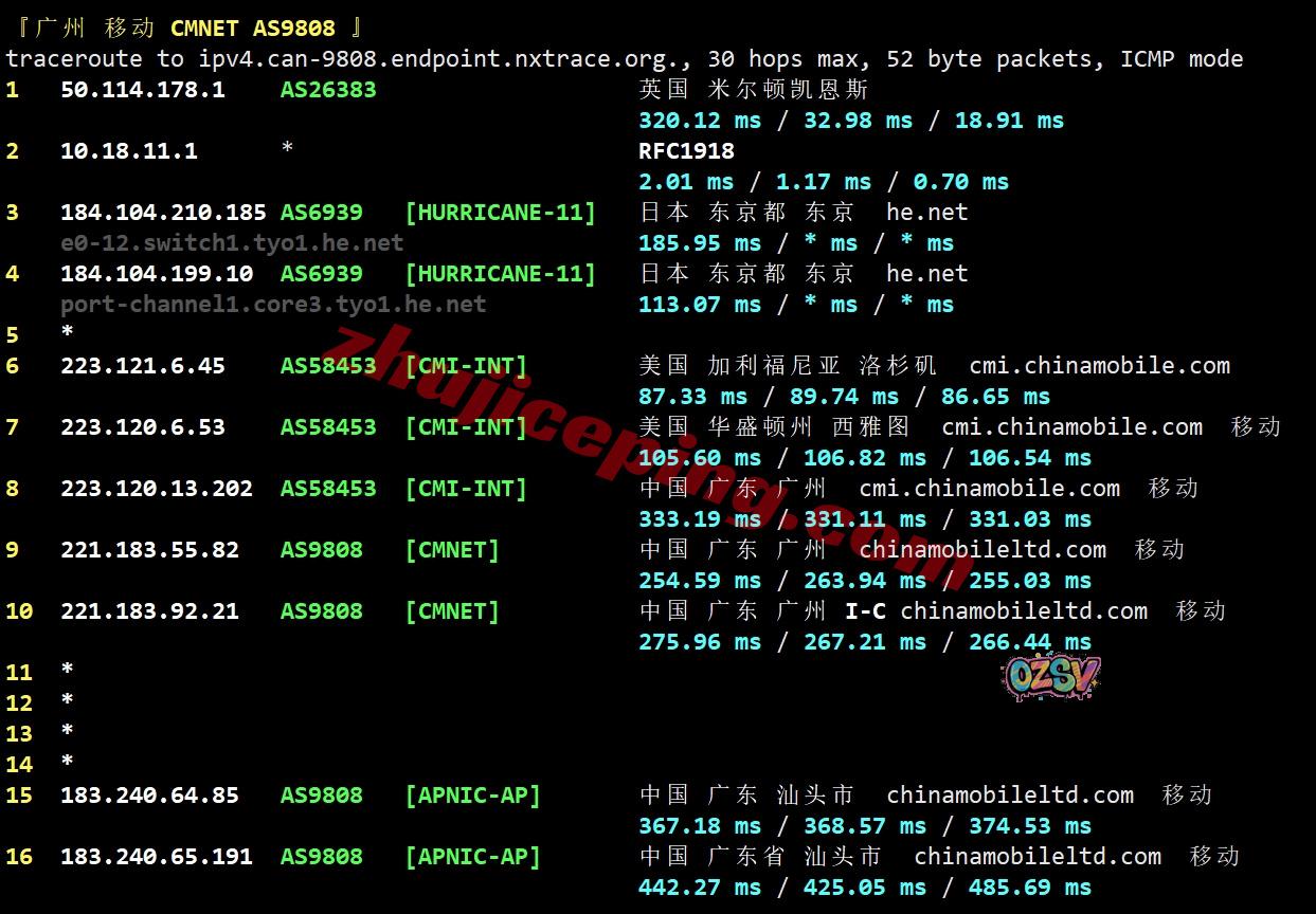 北京、广州方向:走HE.NET去洛杉矶,从移动洛杉矶去移动西雅图节点然后直连回国
