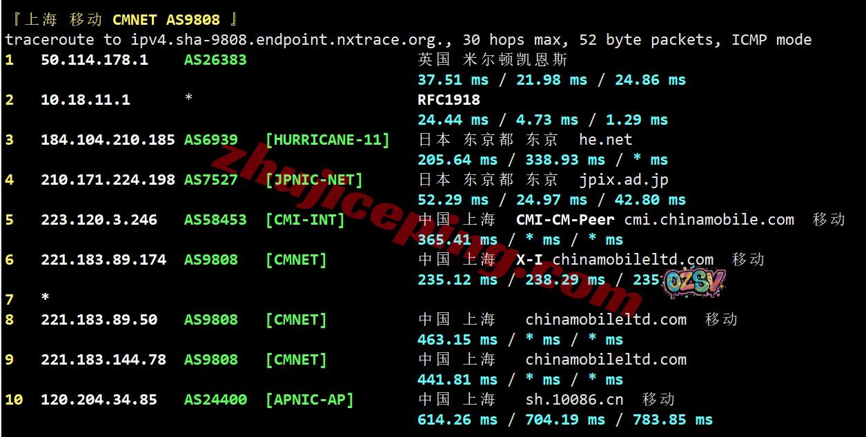 移动去程:直连移动美国圣何塞节点然后接He.net去日本