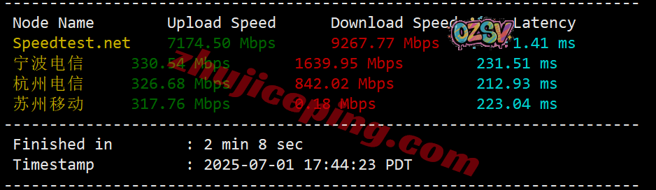 国内三网多节点的带宽上下行测试数据(目前没有可用联通节点可测,另外PDT时间比国内晚了15个小时):