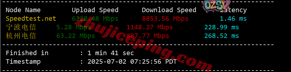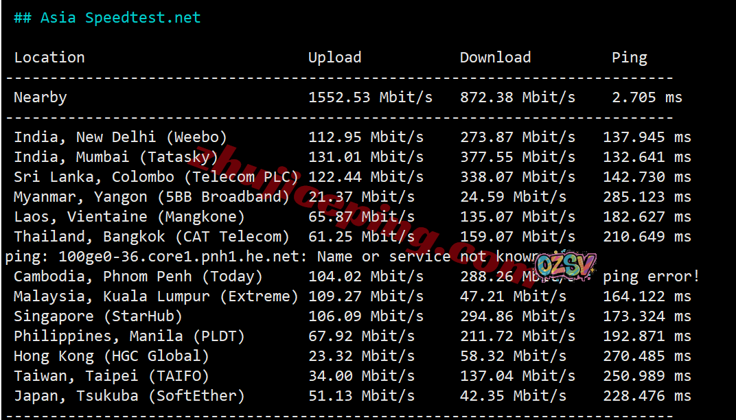 SpeedTest.Net的部分亚洲境内的节点的带宽上下行测试数据: