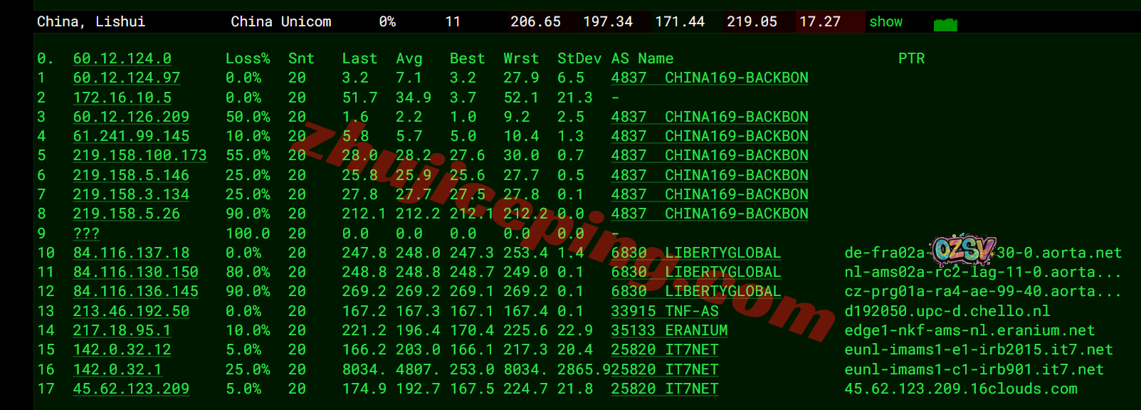 联通去程:直连联通德国法兰克福节点然后接aorta去荷兰
