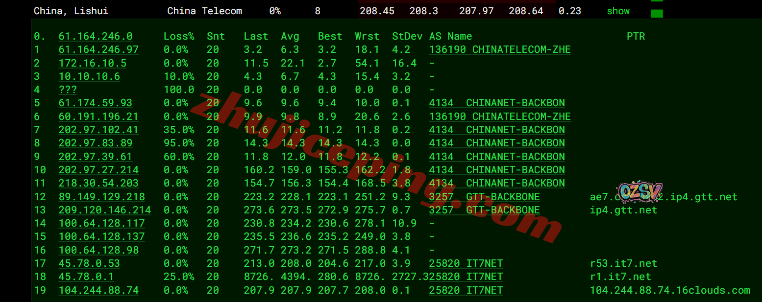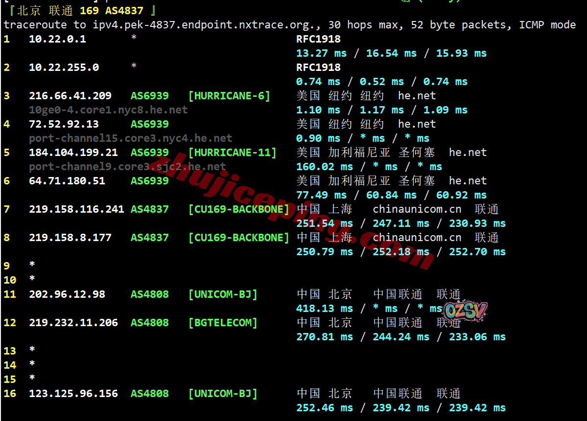 联通去程:直连联通美国洛杉矶节点然后接GTT去纽约