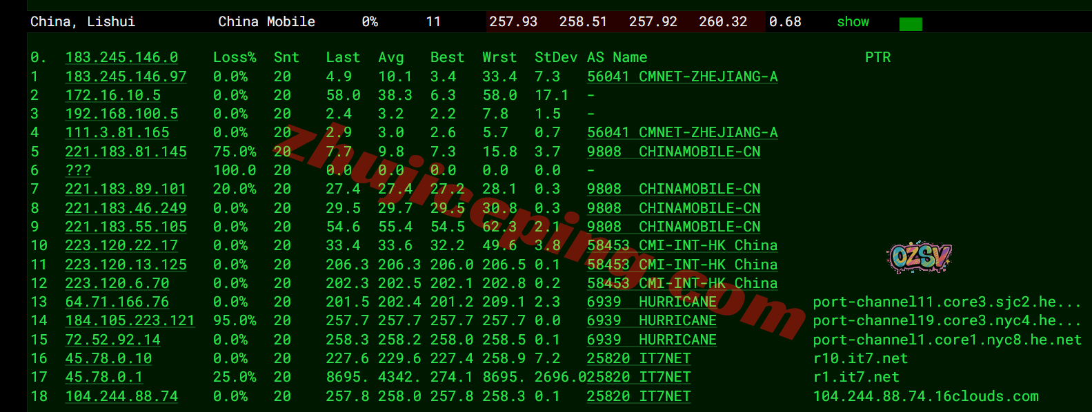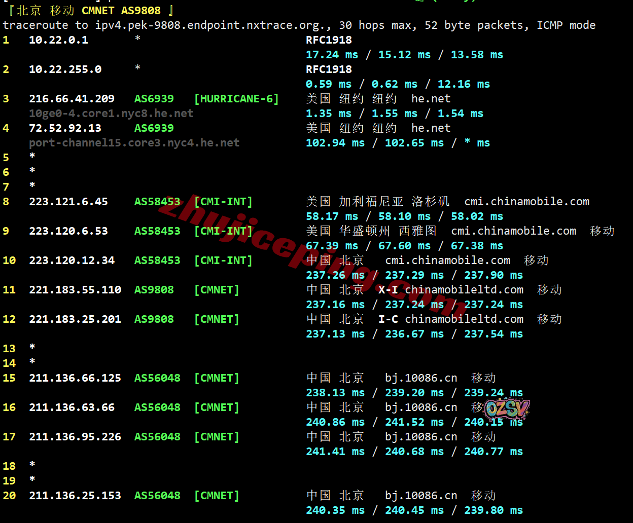移动去程:直连移动美国圣何塞节点然后接HE.NET去纽约