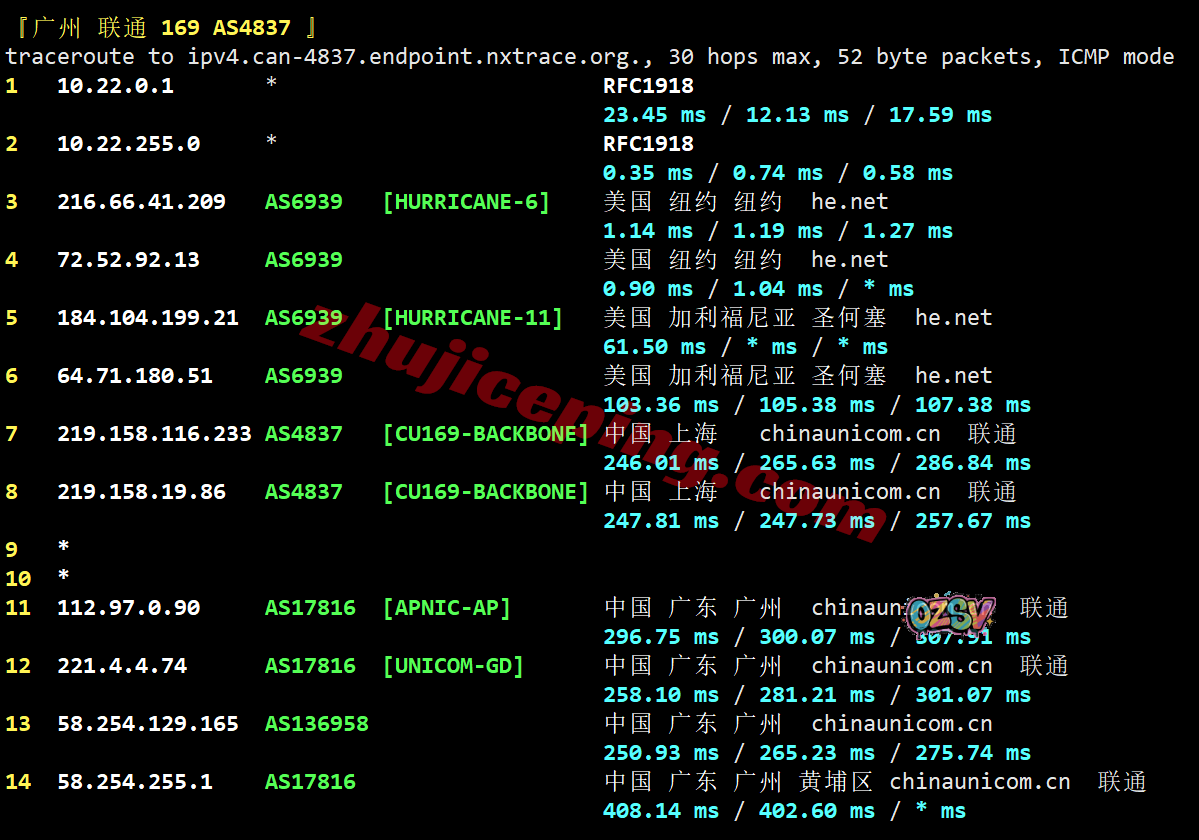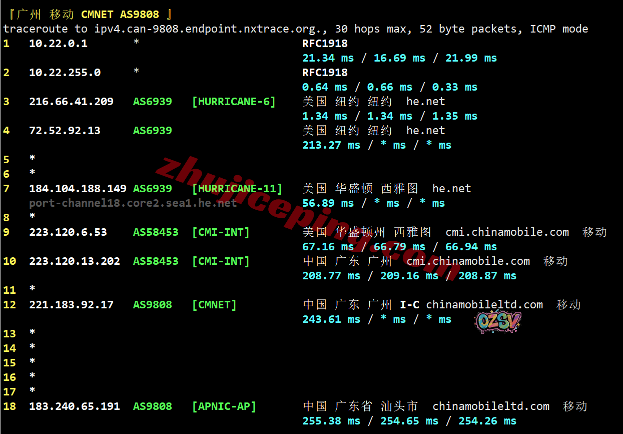 广州方向:走HE.NET去西雅图,然后从移动西雅图节点直连出海回国