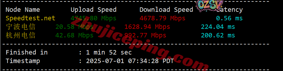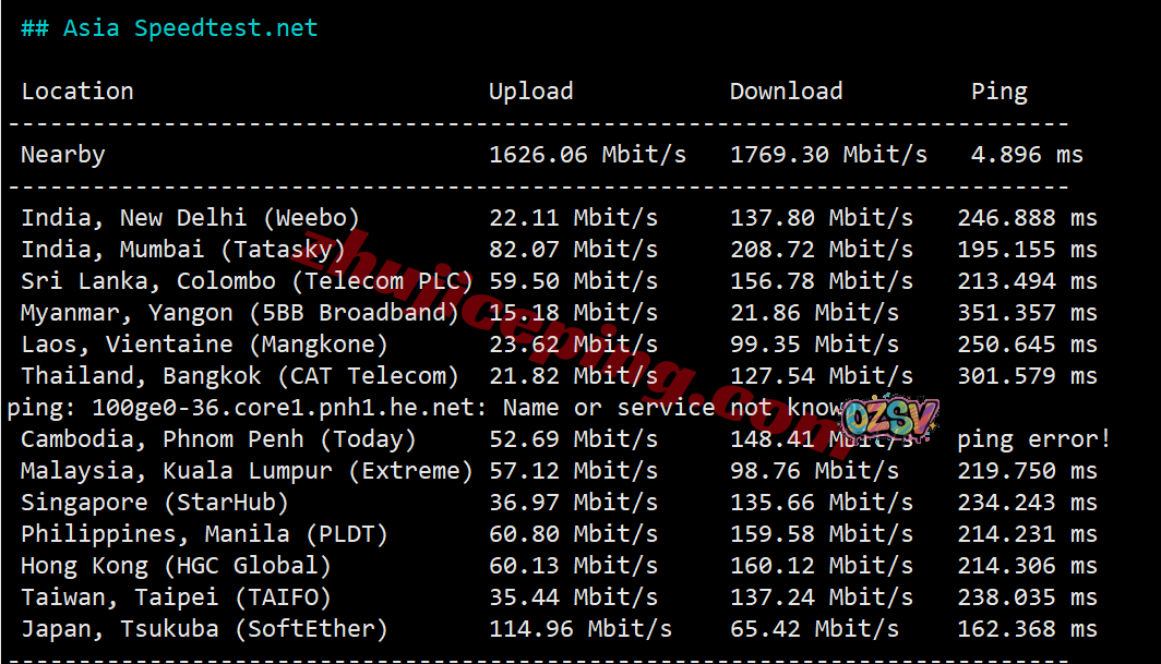 SpeedTest.Net的部分亚洲境内的节点的带宽上下行测试数据如下: