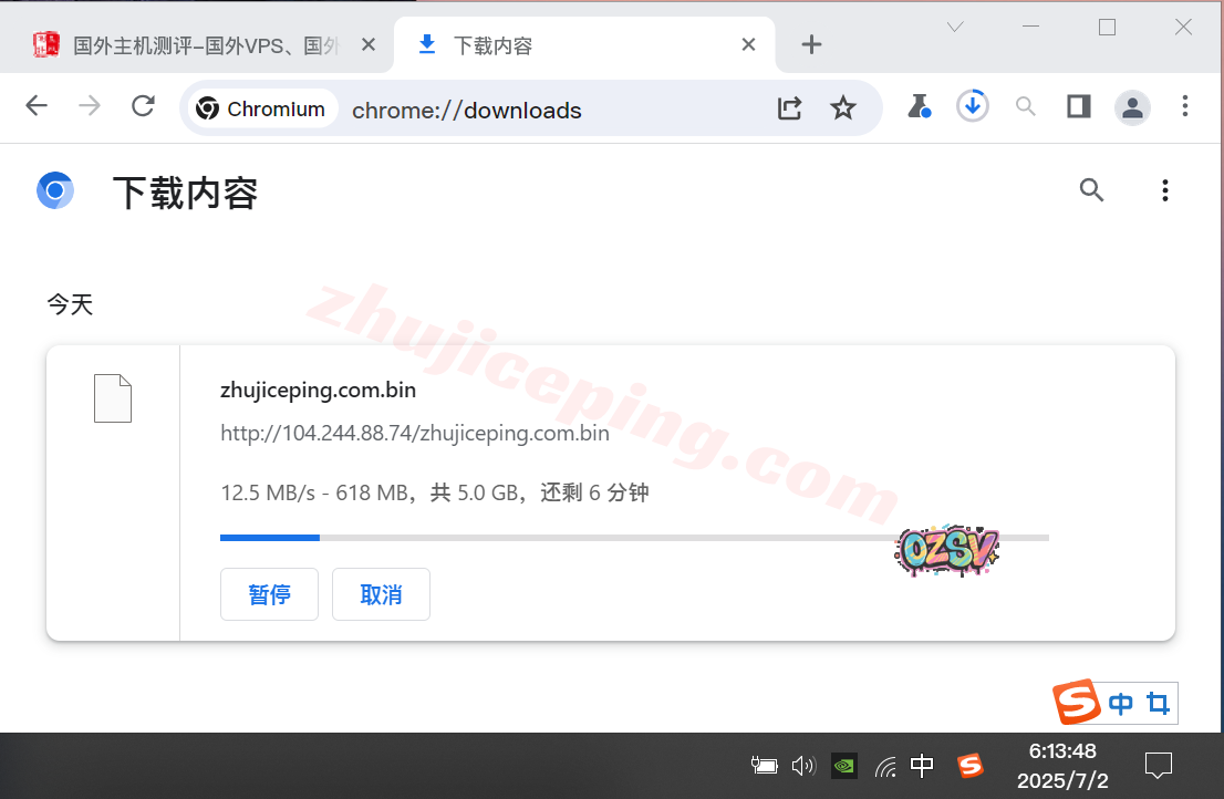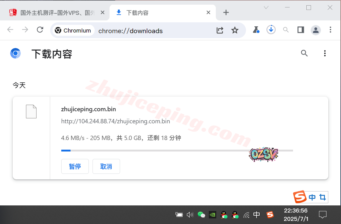 存放在测试VPS上的文件,站长广州联通家宽直接用Chrome下载该文件,大致的下载速度如下: