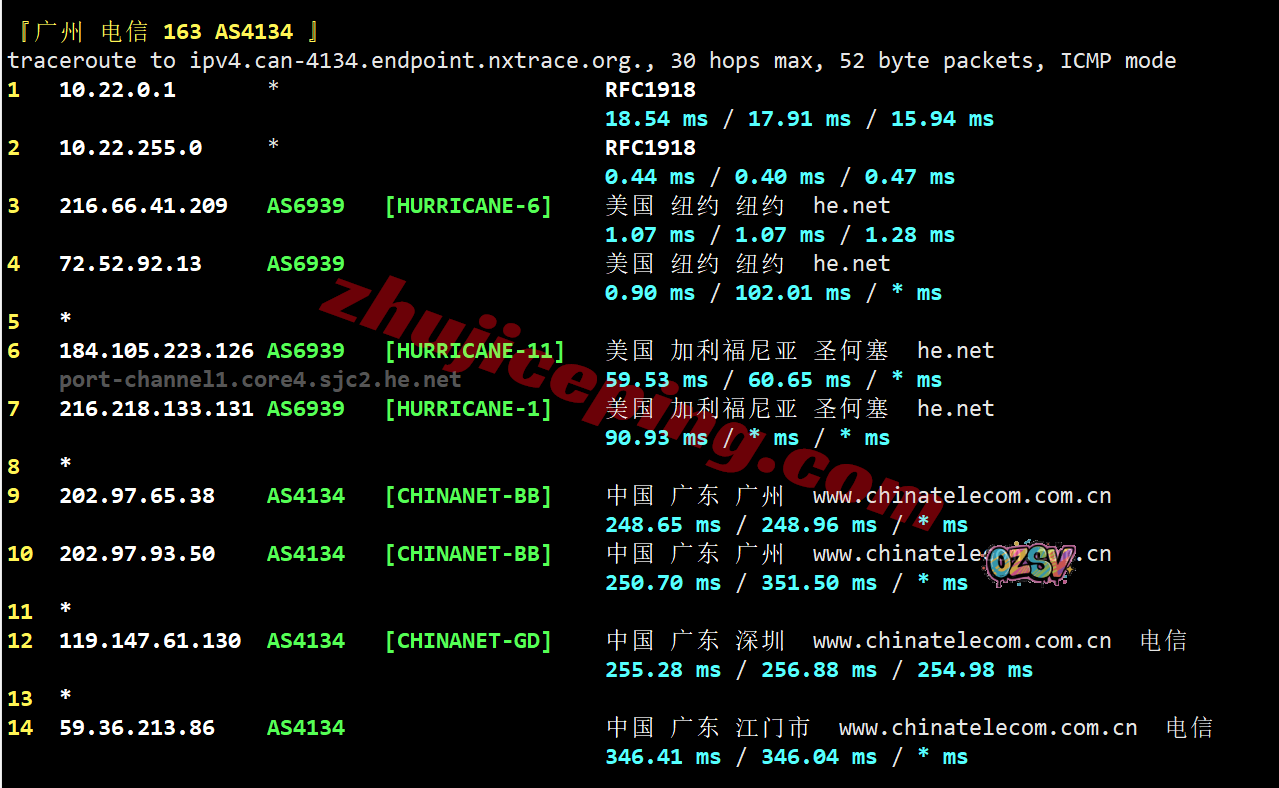 电信去程:直连电信美国圣何塞节点然后接GTT去纽约