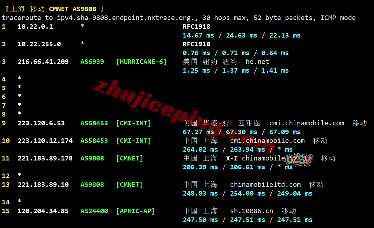上海方向:走HE.NET去西雅图,从移动西雅图节点直连出海回国