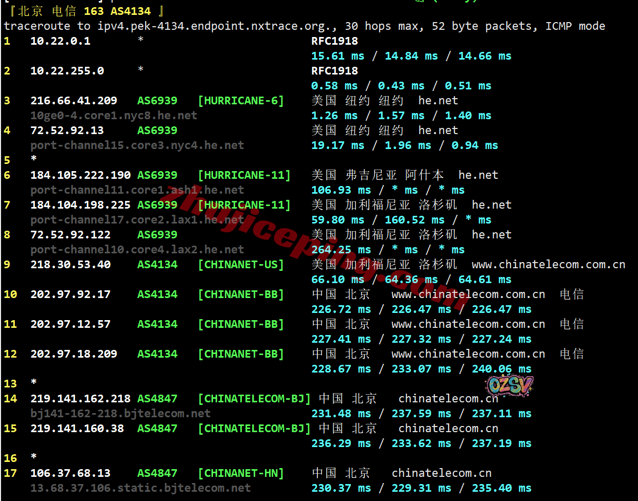 北京方向:走HE.NET经过阿神本去洛杉矶,然后从电信洛杉矶节点直连出海回国