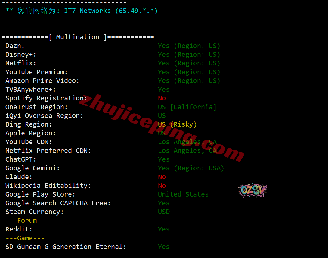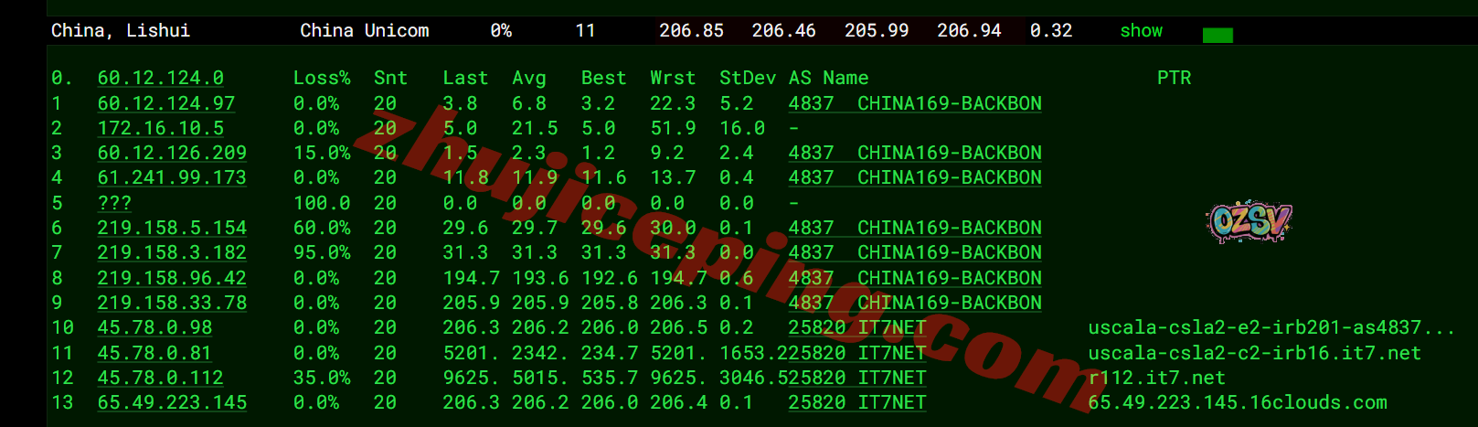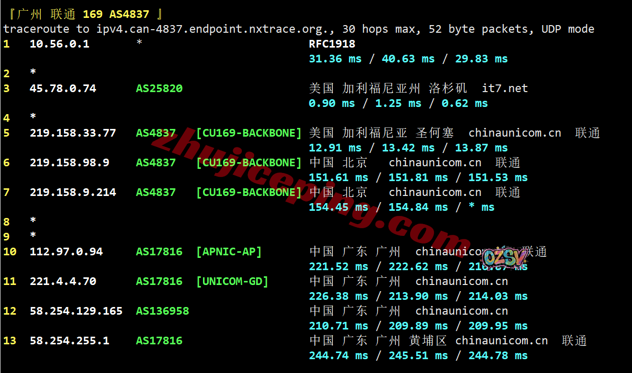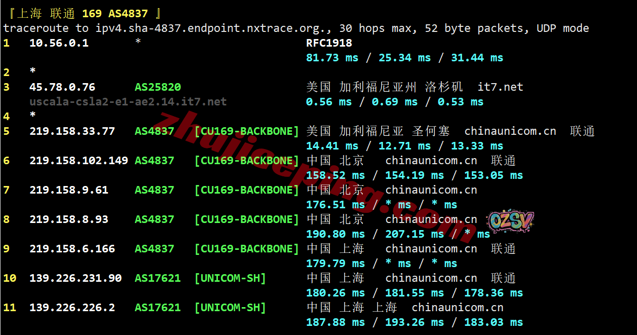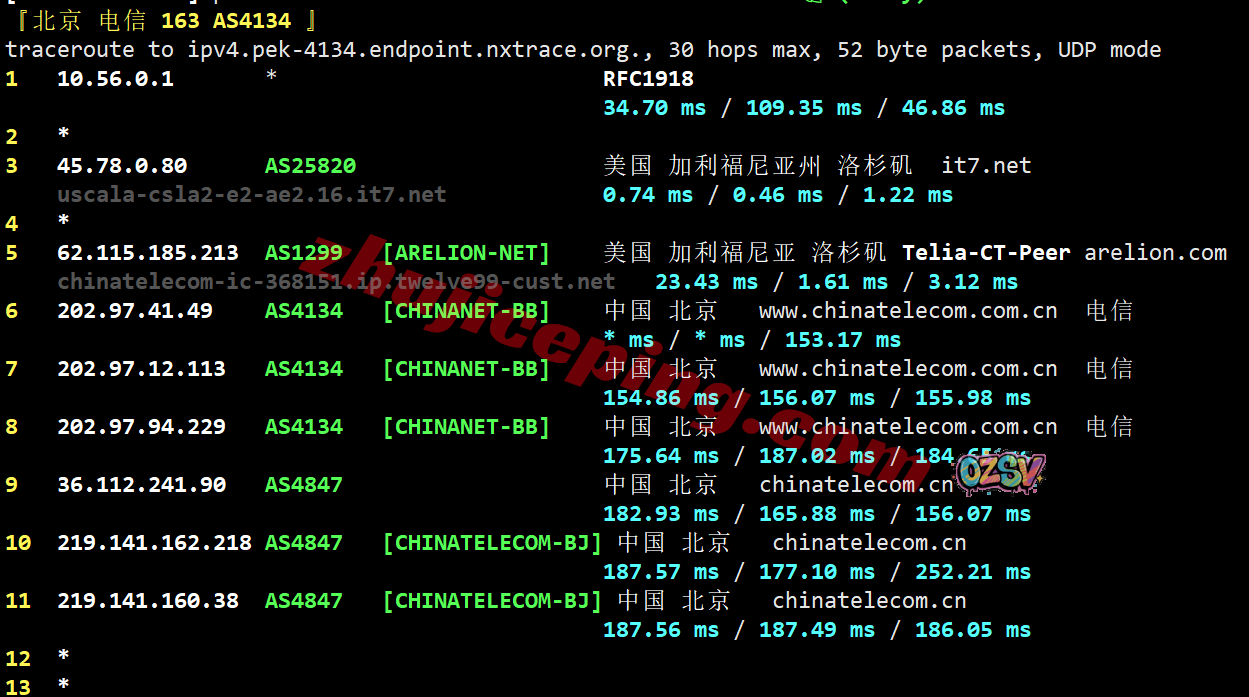 三网回程:联通回程是从机房出来到联通圣何塞节点直连出海,电信和移动是机房出来接telia之后再从洛杉矶各自运营商节点直连出海回国。