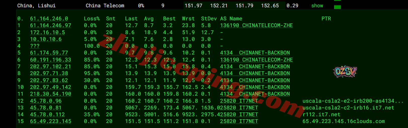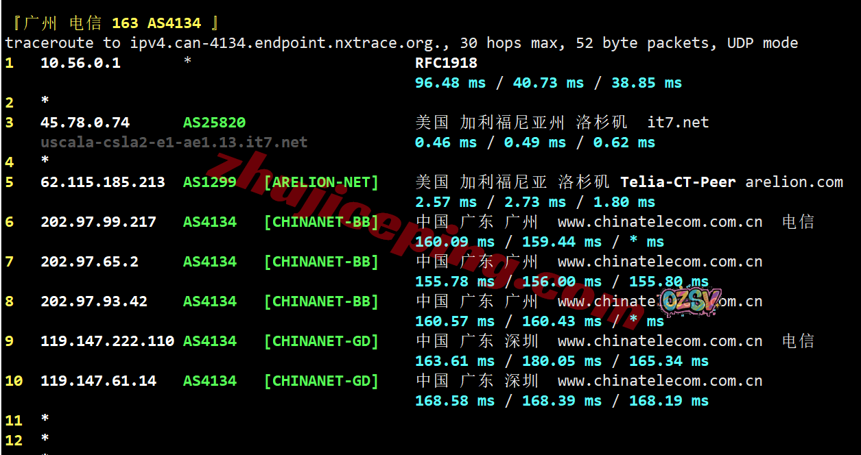 电信去程:直连电信美国洛杉矶节点然后去机房