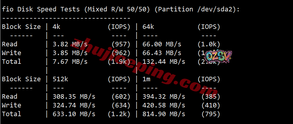 FIO数据读写测试,很明显IOPS被限制了,大致的实测结果如下: