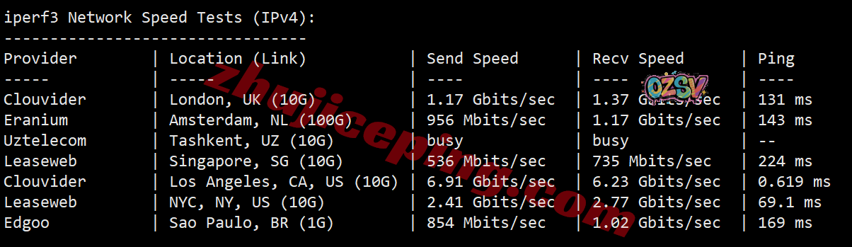 IPERF3测试,几个国际热门节点的实测数据分享: