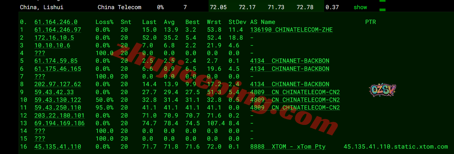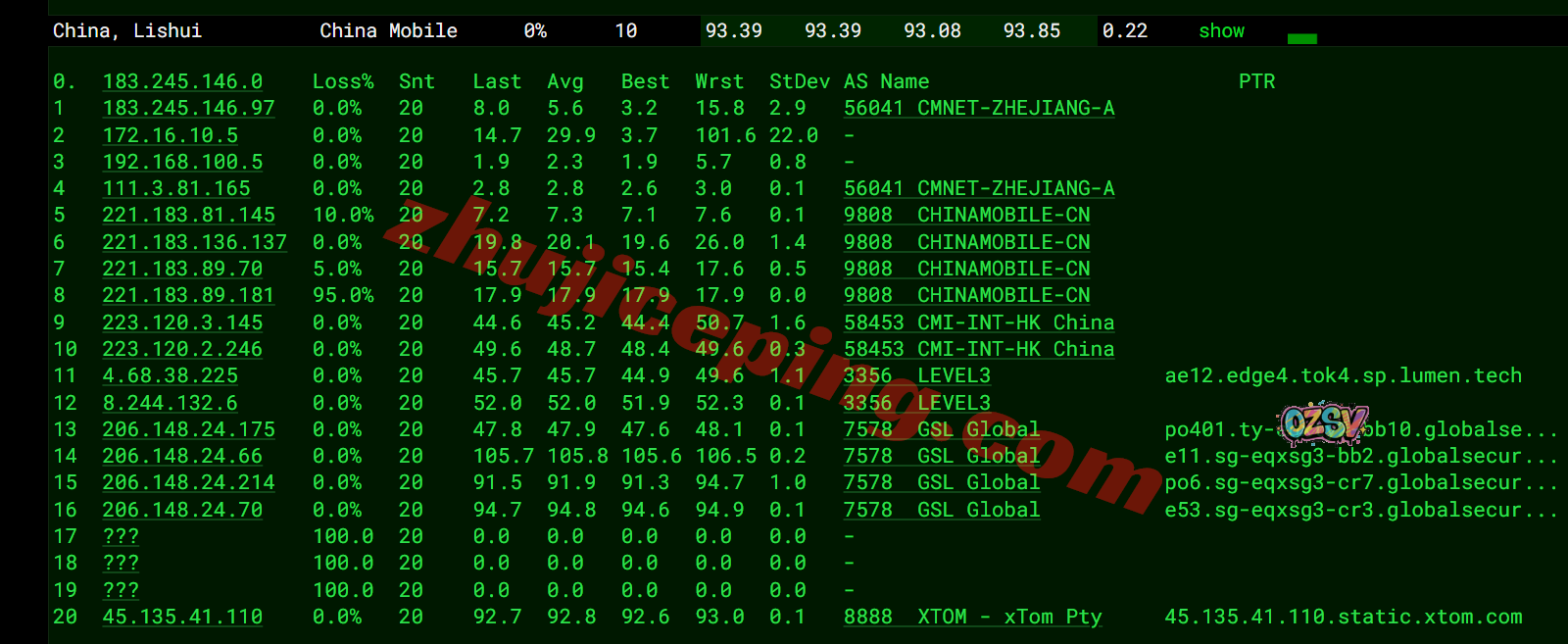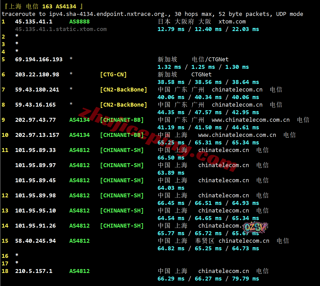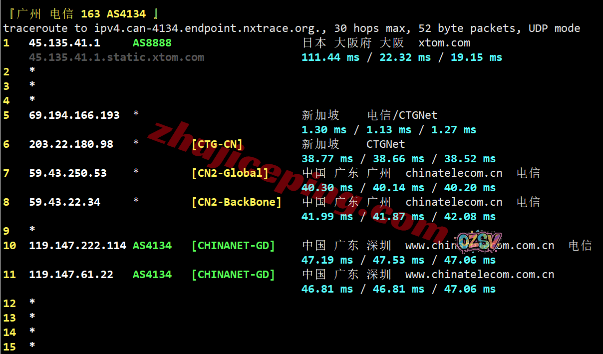 联通去程:联通接NTT先去日本东京,然后接GSL Networks 到新加坡