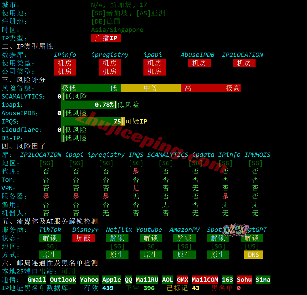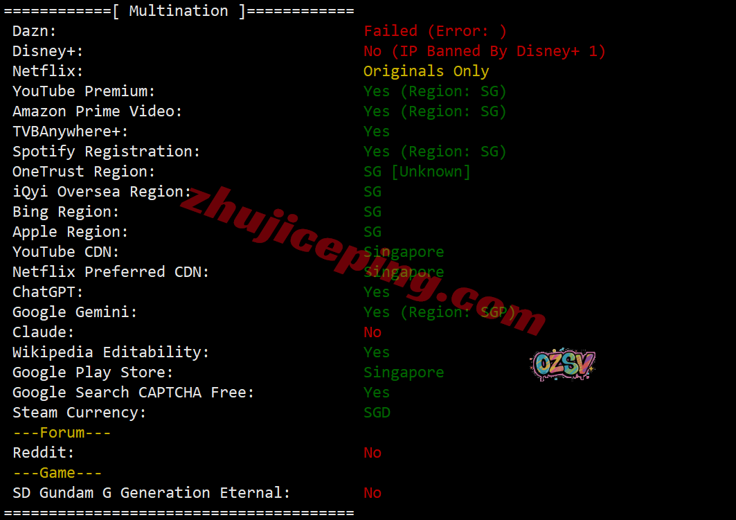 ⭐更新⭐ 本文是搬瓦工新加坡CN2 GIA高端大带宽VPS的测评数据更新,主旨为大家带来搬瓦工新加坡VPS的最新数据让大家能比较全面了解大致的情况,核心关注点包括“延迟、去程和回程、早晚高峰的带宽上下行能跑多少、IP解锁流媒体、VPS性能测试跑分数据”等。 2024年6月的时候主机测评给大家测试过(戳这里:搬瓦工新加坡VPS怎么样?1Gbps直连大带宽,强制三网高端CTG/CN2网络 ),大家可以对比本次的测试看看,看看有什么变化或者不同。