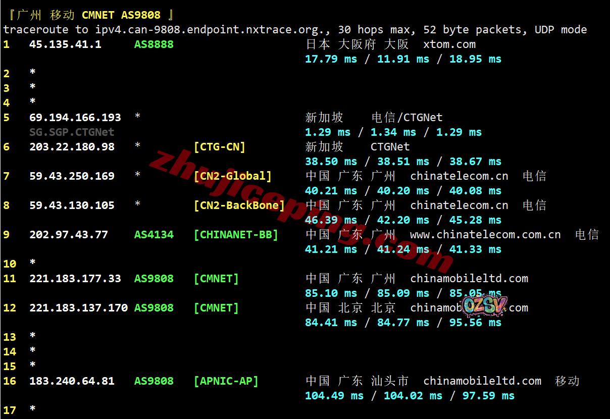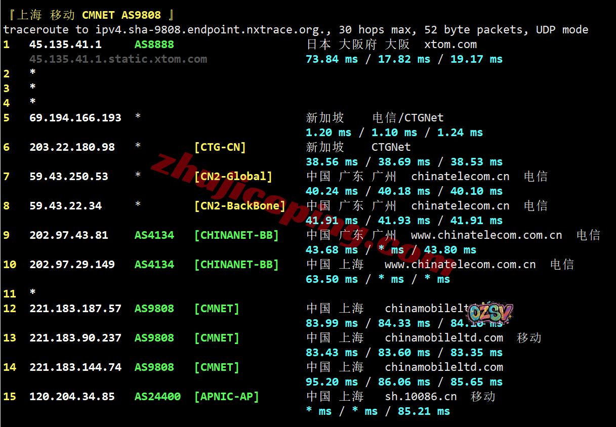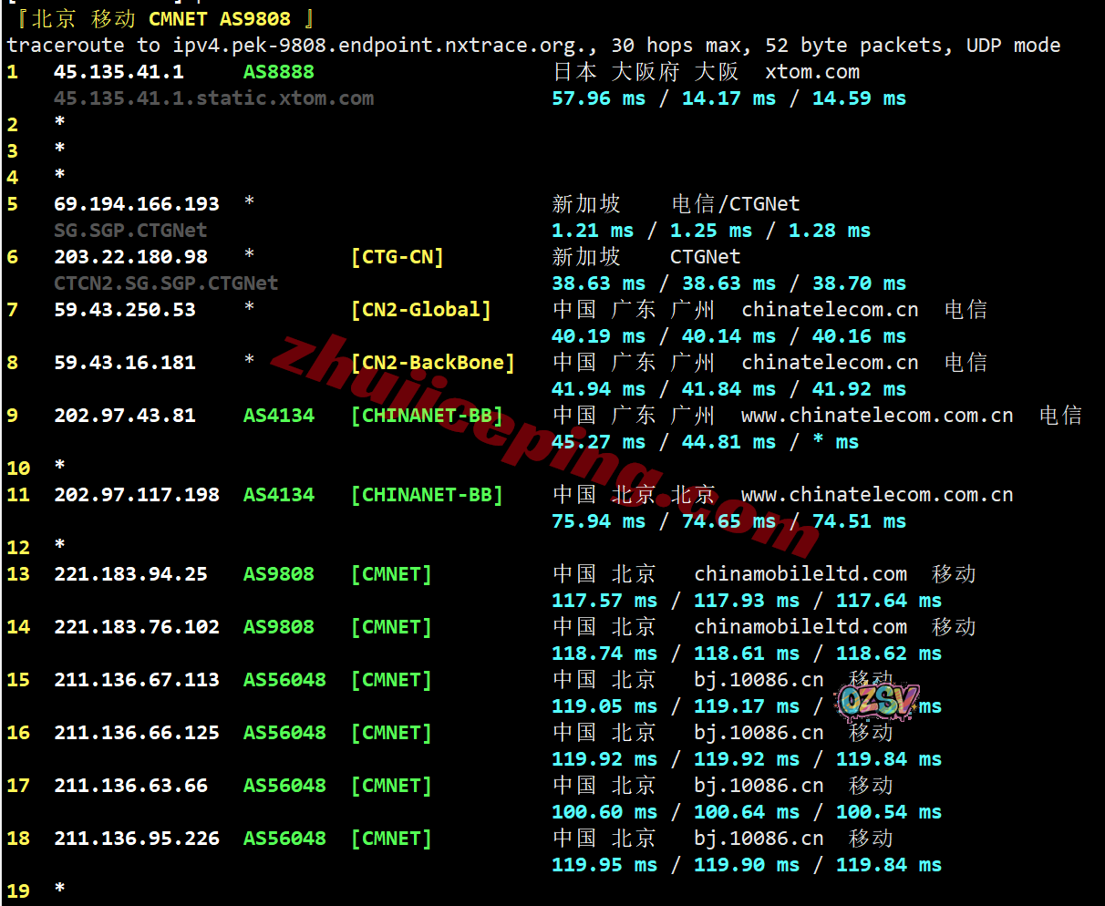 三网去程:电信走的是CN2、联通和移动移动都要先绕一下日本再去新加坡;