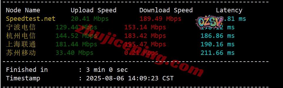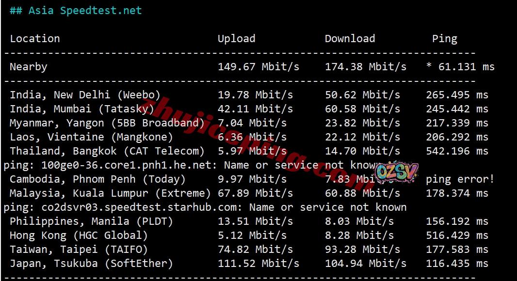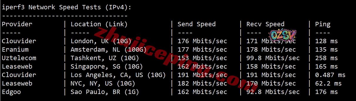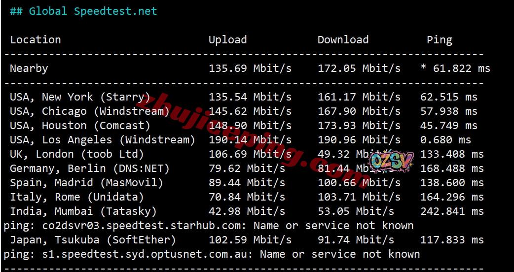 SpeedTest.Net的部分国际节点的带宽上下行测试数据:
