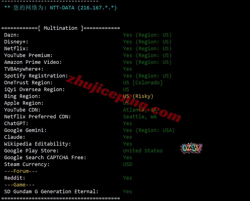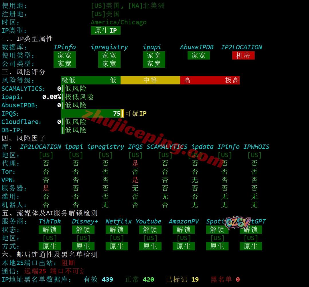多个数据库对当前IPv4属性的大致判断:原生美国IP,多个数据库判断为家宽属性(ip2location例外),解锁非常好