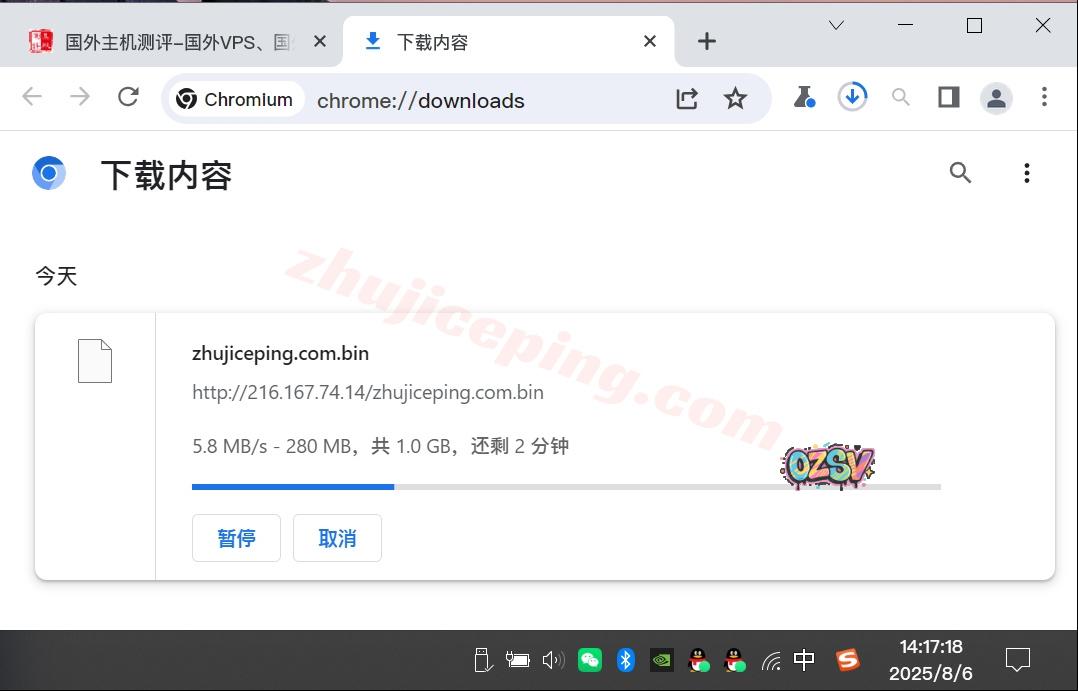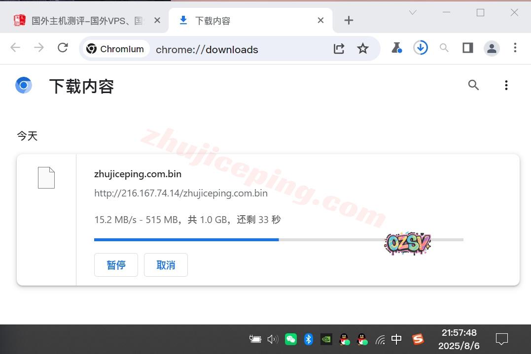 存放在测试VPS上的文件,站长广州联通家宽直接用Chrome下载该文件,大致的下载速度如下所示: