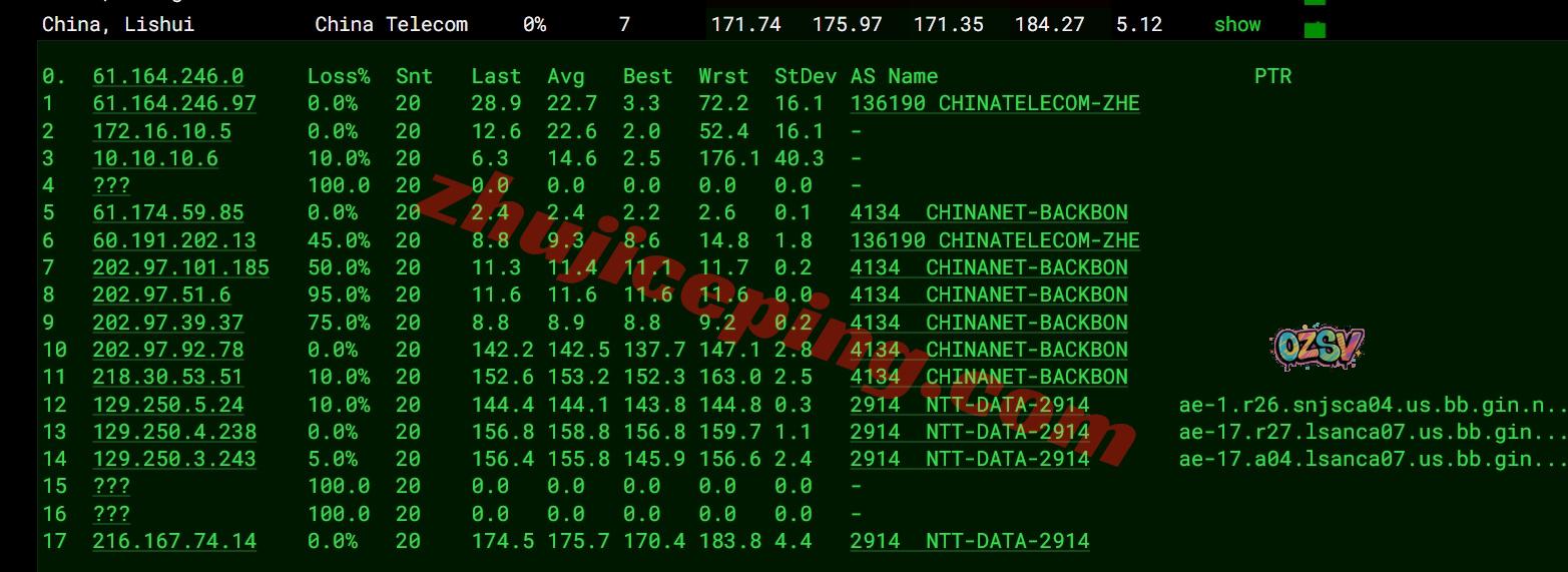 电信去程:直连电信美国圣何塞节点然后接NTT去洛杉矶