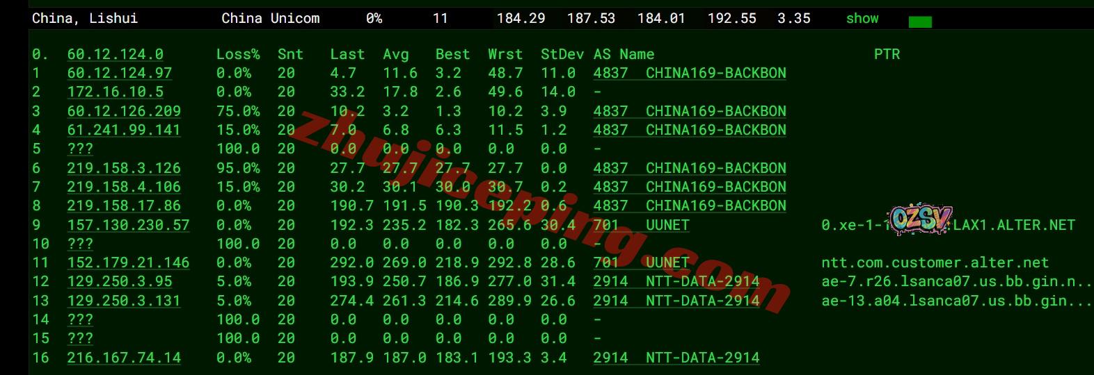 联通去程:直连联通美国洛杉矶节点然后接alter.net转NTT去机房
