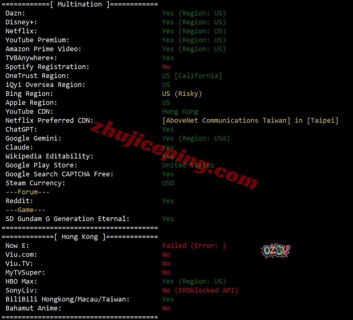 部分流媒体解锁测试,IPv4环境下,大致结果如下: