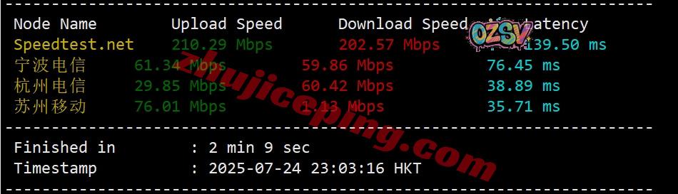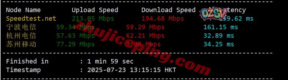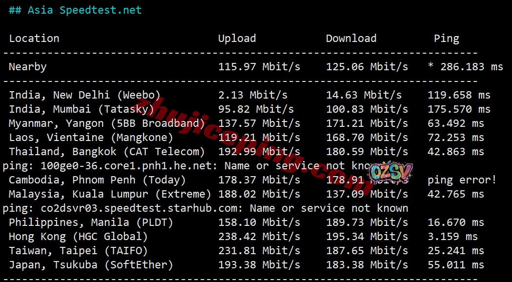 SpeedTest.Net的部分亚洲境内的节点的带宽上下行测试数据: