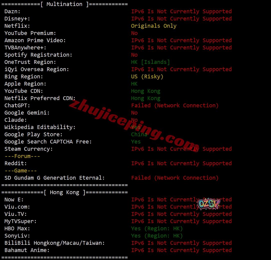 部分流媒体解锁测试,IPv6环境下,大致结果如下: