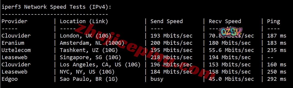 IPERF3测试,IPv4环境下,几个热门估计节点的测试数据: