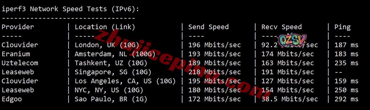 IPERF3测试,IPv6环境下,几个热门估计节点的测试数据: