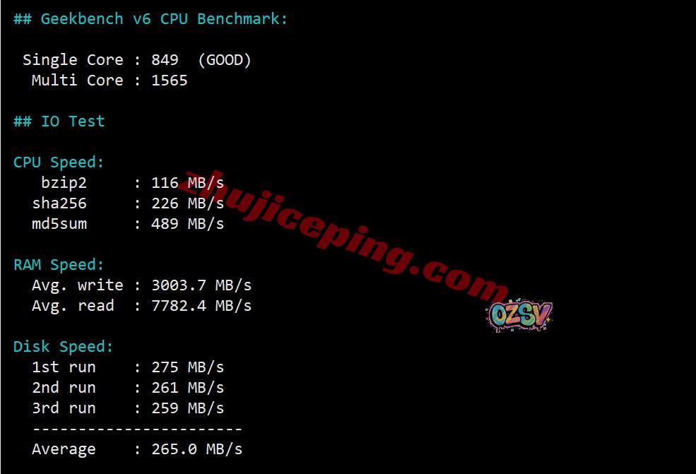 目前来看VPS性能还可以,有可能已经有一定负载了,相对来说I/O要是再高些就好了;